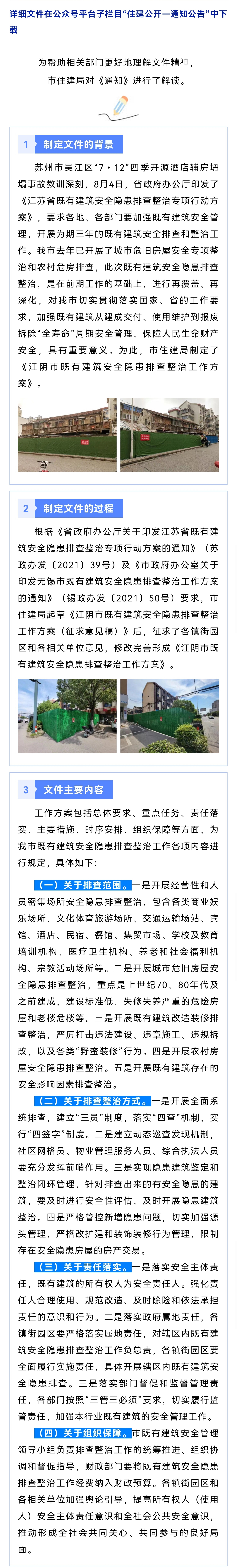 | 內容概述 | 《江陰市既有建筑安全隱患排查整治工作方案》的政策解讀 | ||||