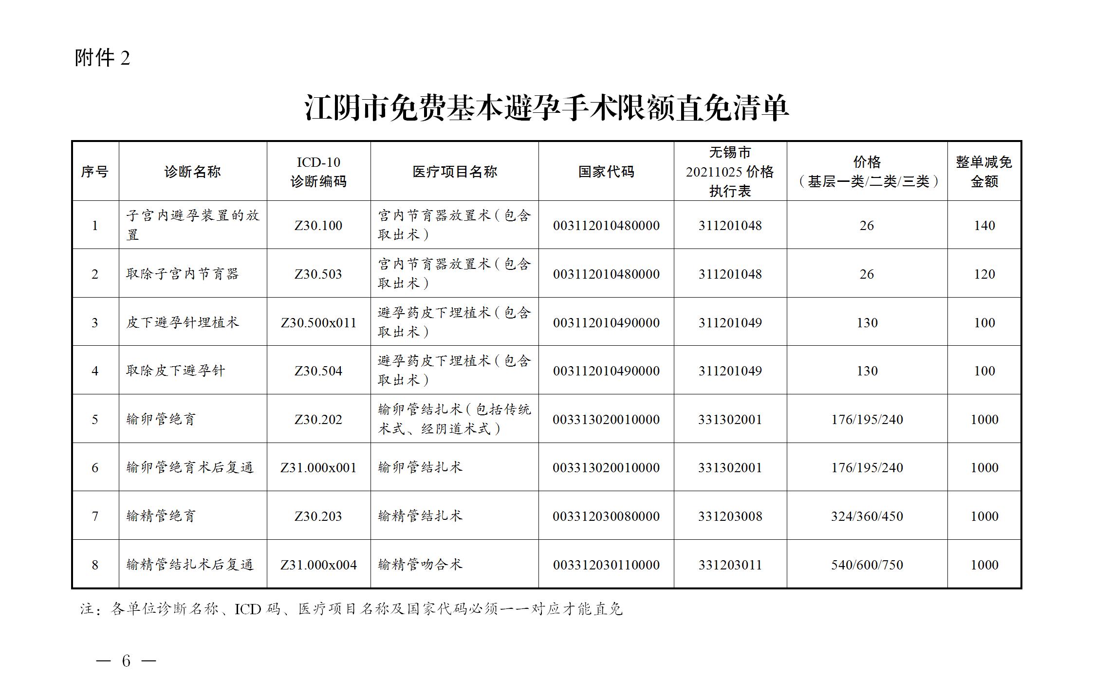 附件:1.江陰市免費基本避孕手術定點機構一覽表