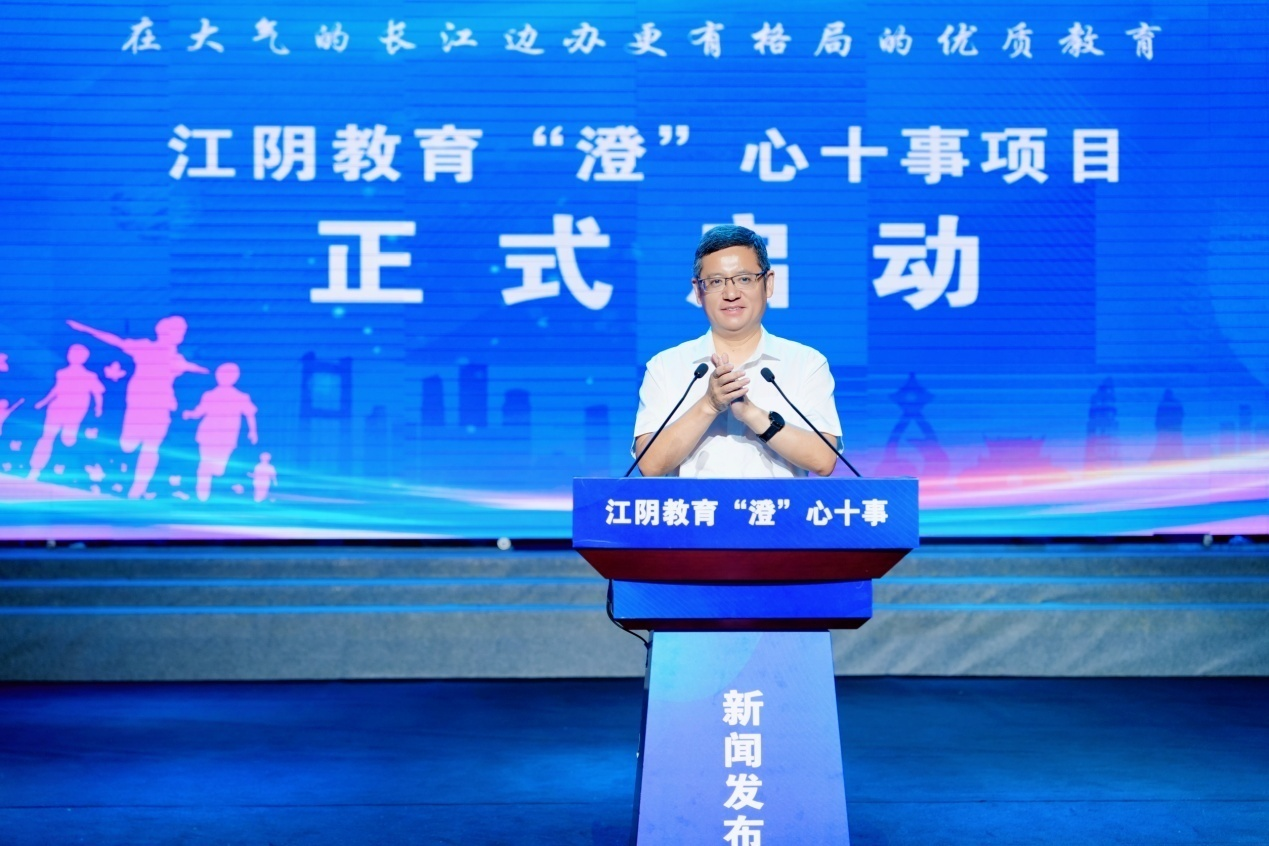 江陰市人民政府副市長杭成宣布“江陰教育‘澄’心十事”項目正式啟動。