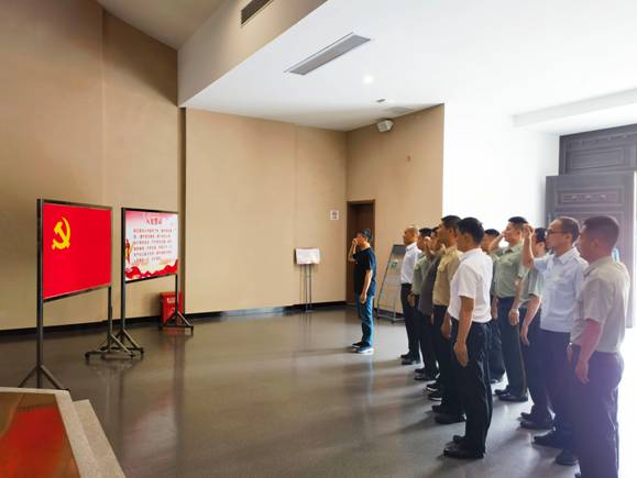 隨后,退役軍人代表來到革命烈士紀念館,在講解員的引導下,一幅幅感人的照片、一段段震撼的歷史、一個個生動的故事,把大家帶回到革命時期那段波瀾壯闊的歲月,為大家帶來了一堂生動的黨課。 “我志愿加入中國共產黨……隨時準備為黨和人民犧牲一切,永不叛黨!”在黨旗前,整齊列隊,面對鮮紅的黨旗重溫入黨誓詞,喚醒入黨初心。