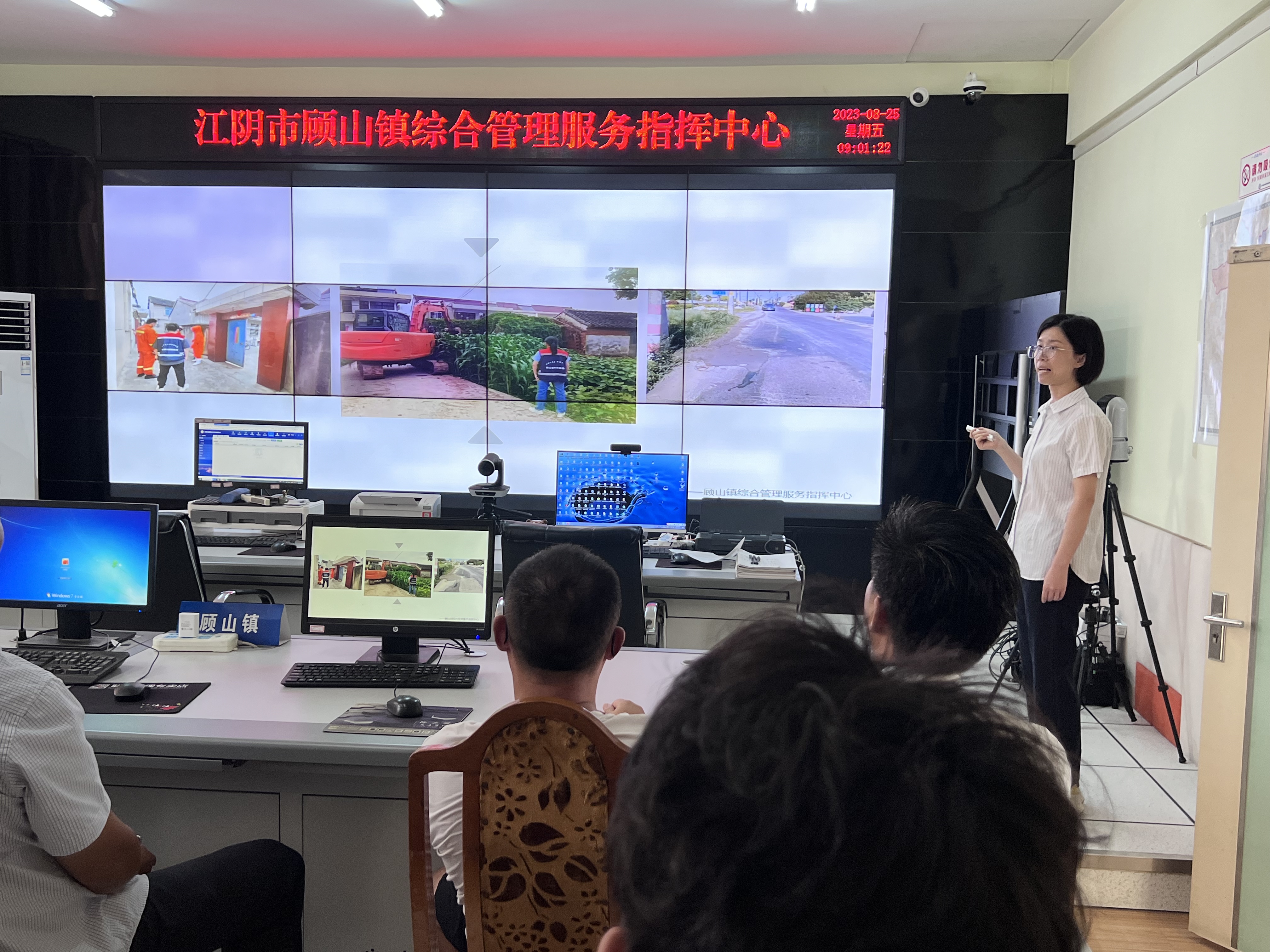 在顧山鎮指揮中心,鎮指揮協調科工作人員向黨員、居民代表們介紹了聯動指揮、共治共享的平臺運行模式及網格管理流程,通過照片、視頻與講解相結合的形式,著重展示了網格員巡查走訪、采集信息、宣傳政策、排查隱患、調解矛盾等日常便民服務工作。