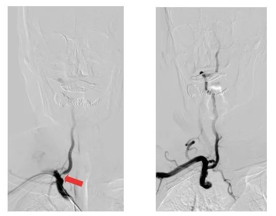 術前術后影像對比(紅色箭頭所指位置為狹窄處)