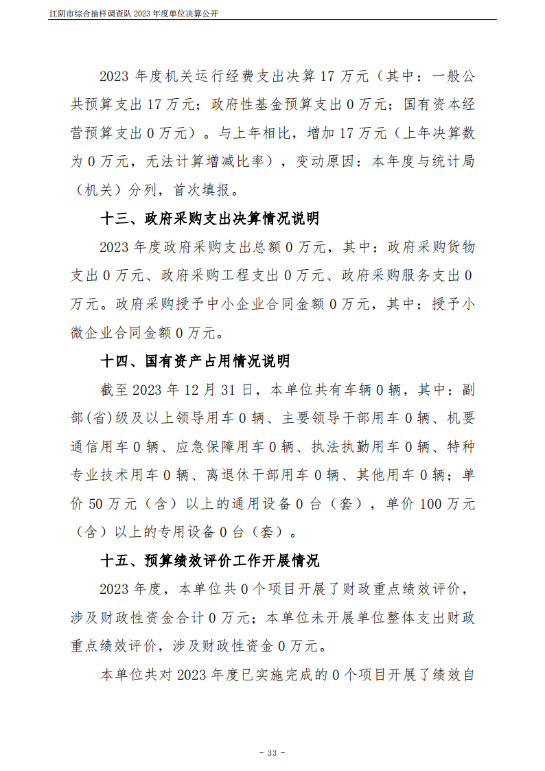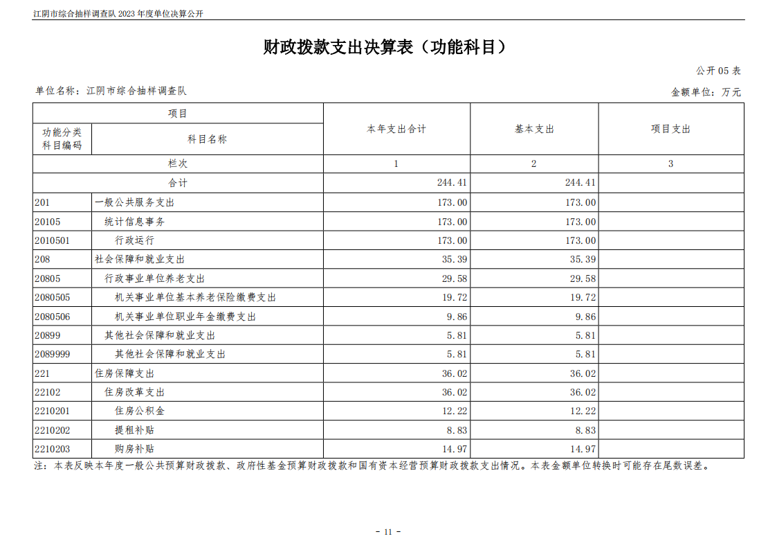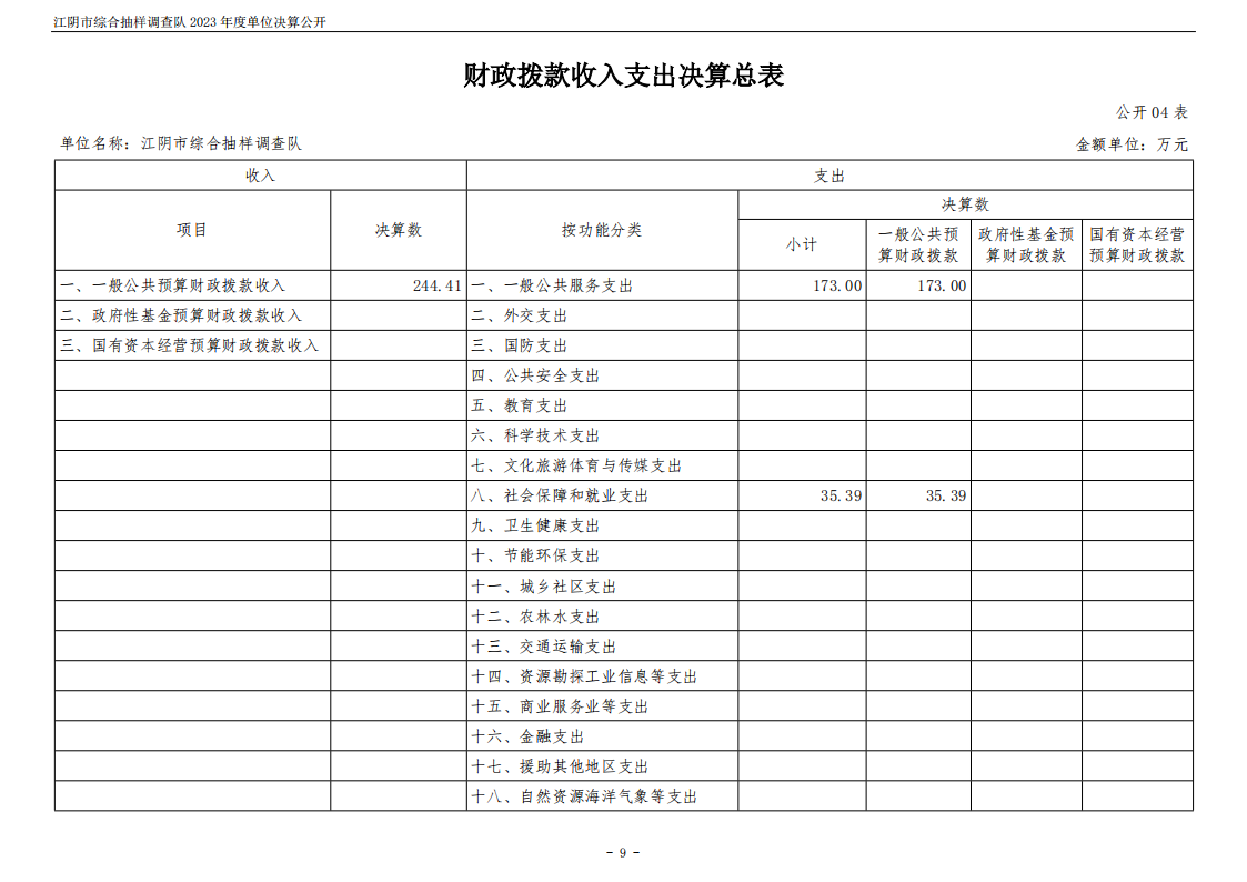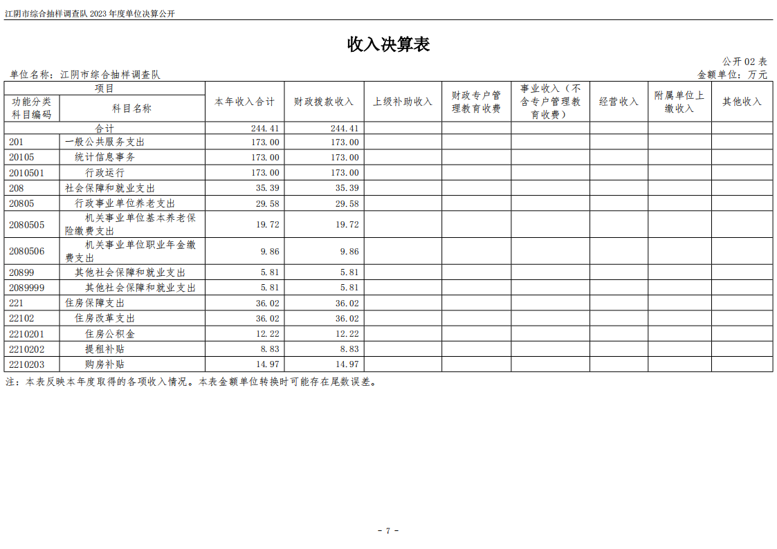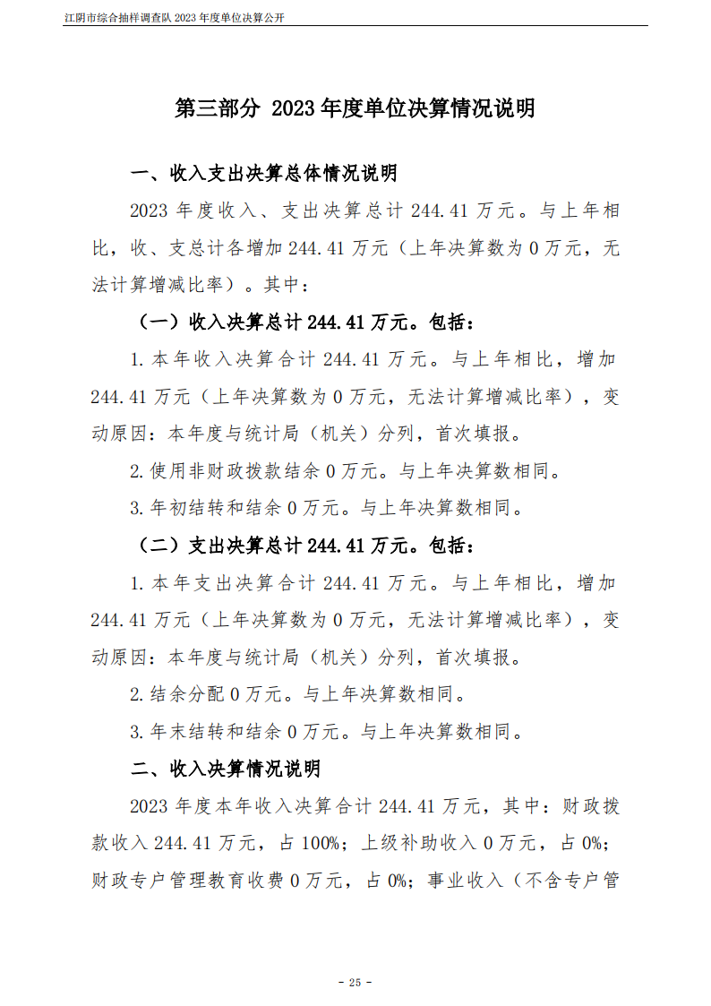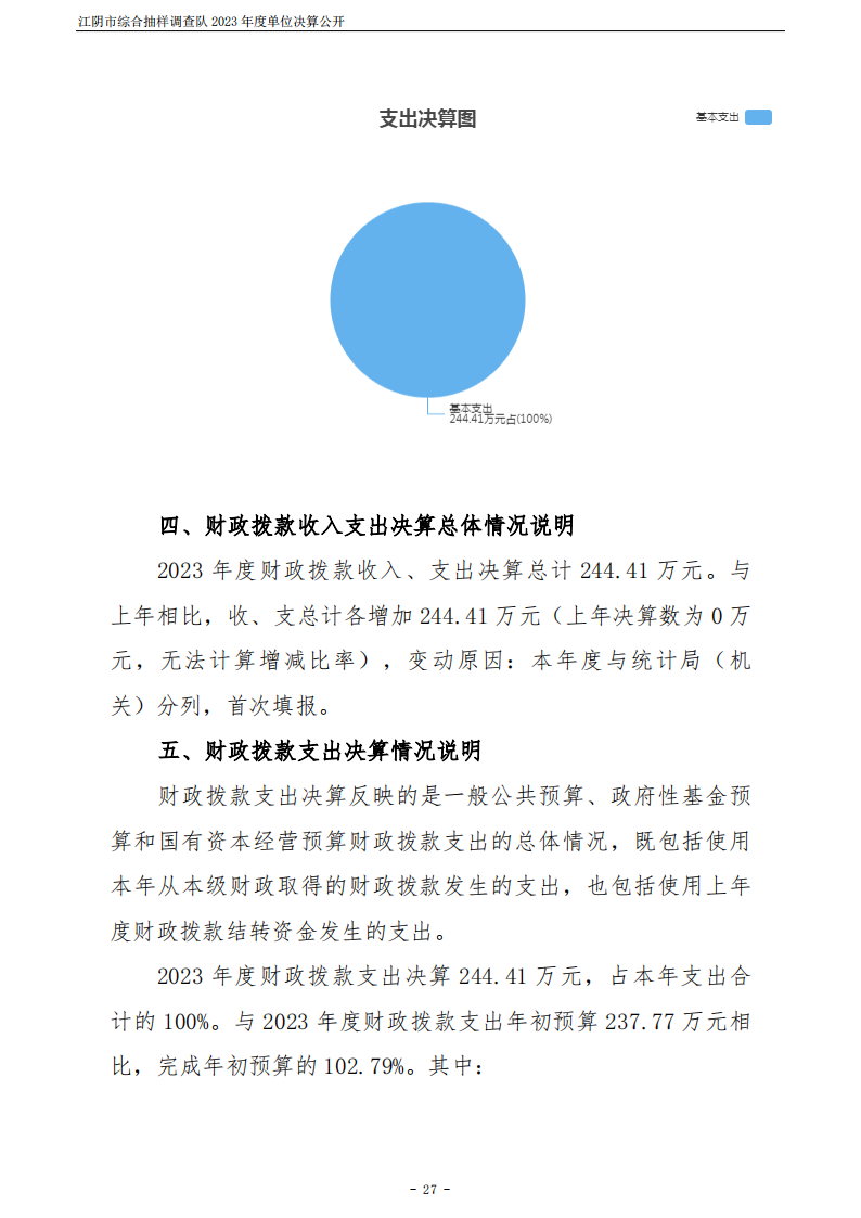 江陰市綜合抽樣調查隊2023年度單位決算公開