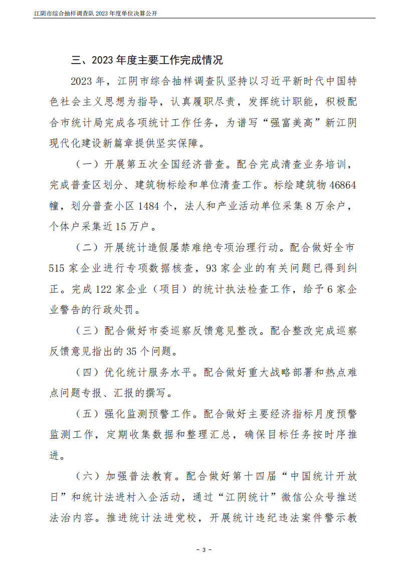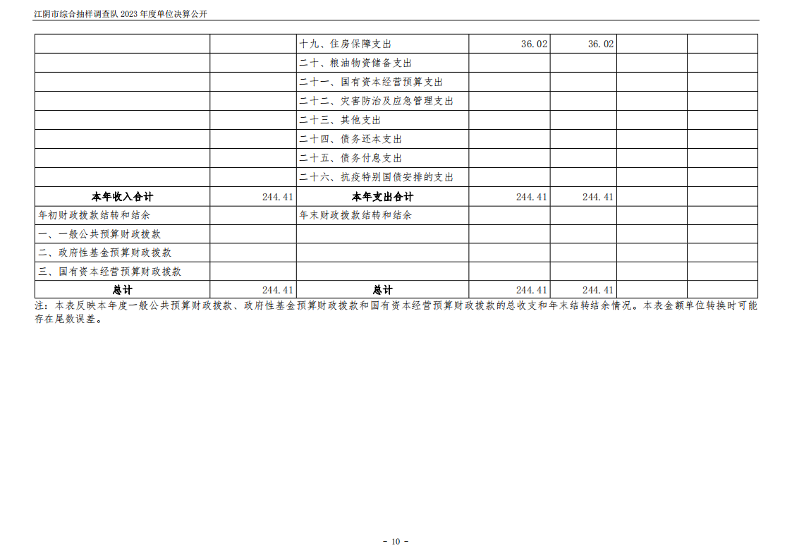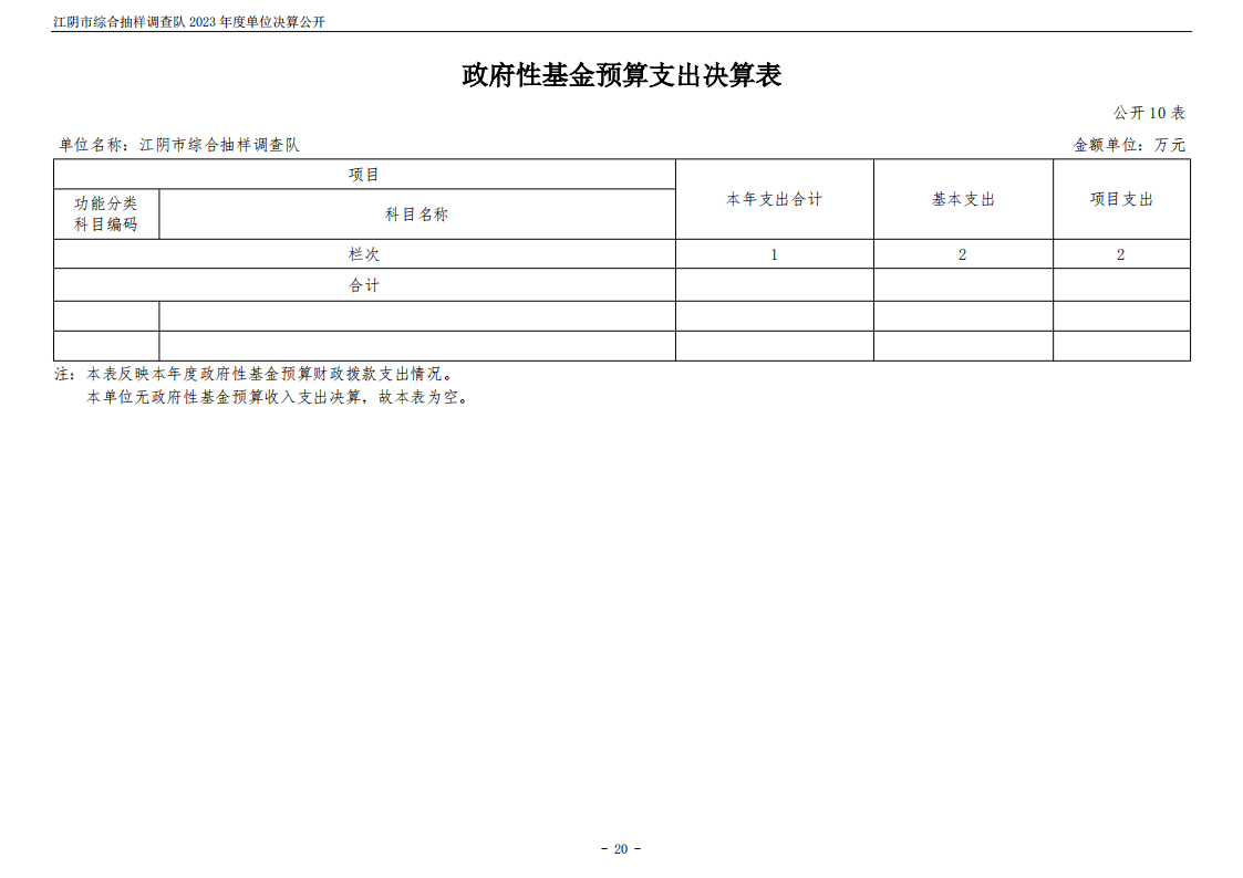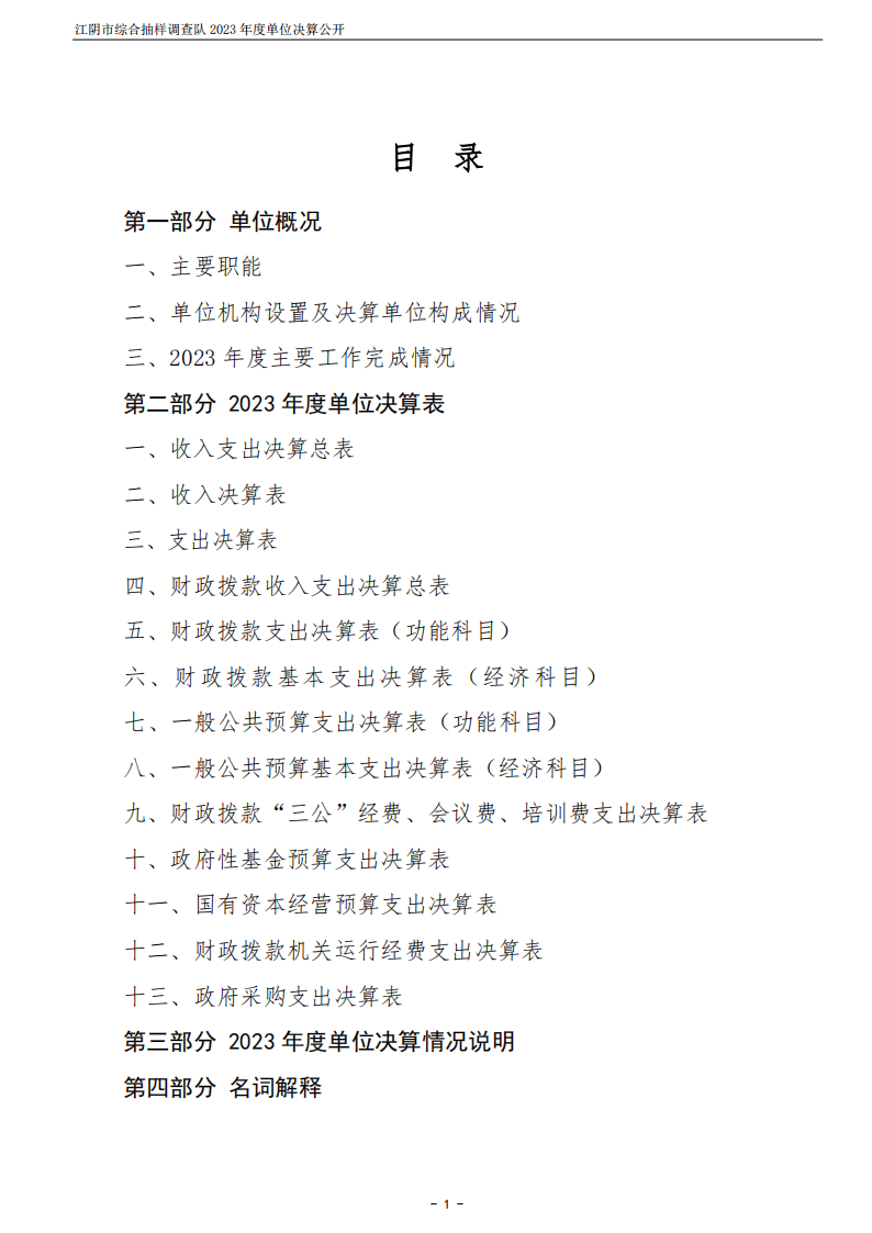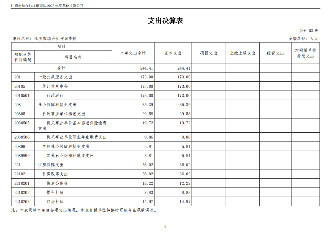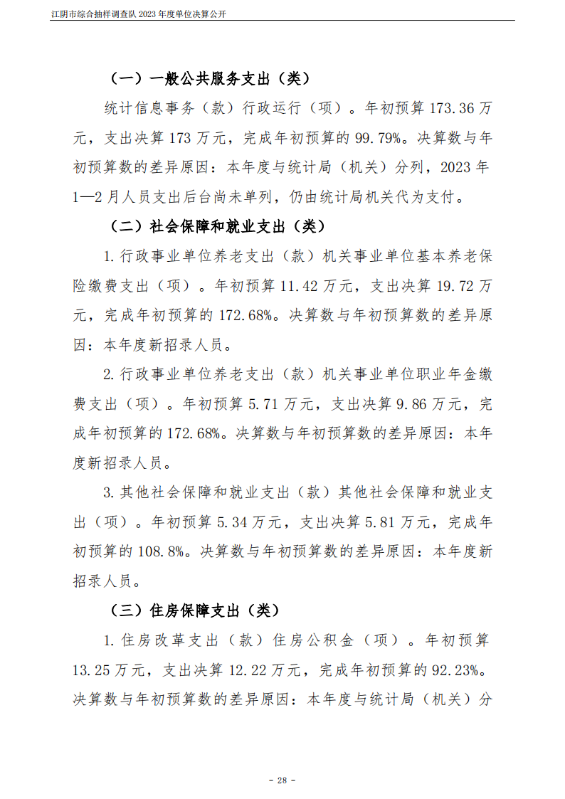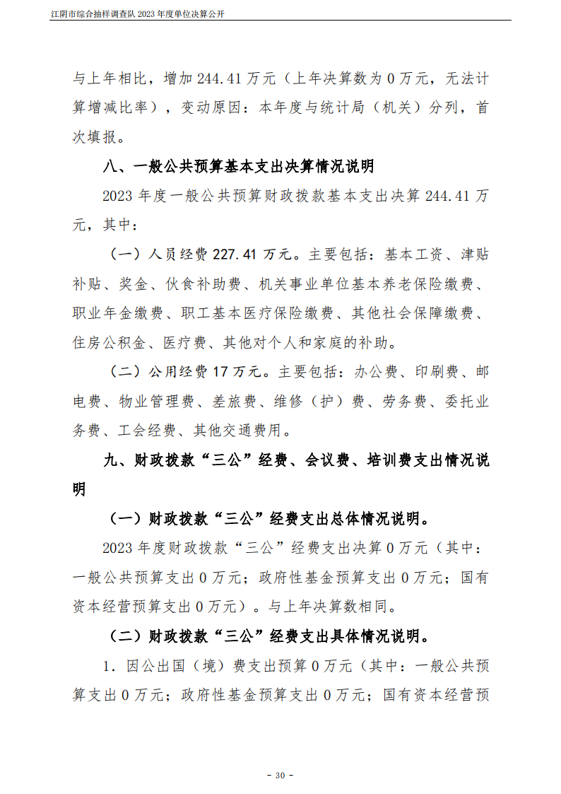 江陰市綜合抽樣調查隊2023年度單位決算公開
