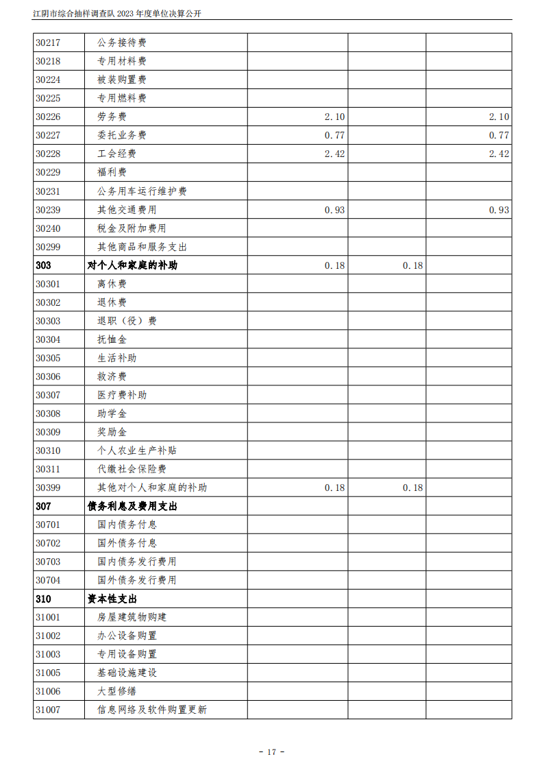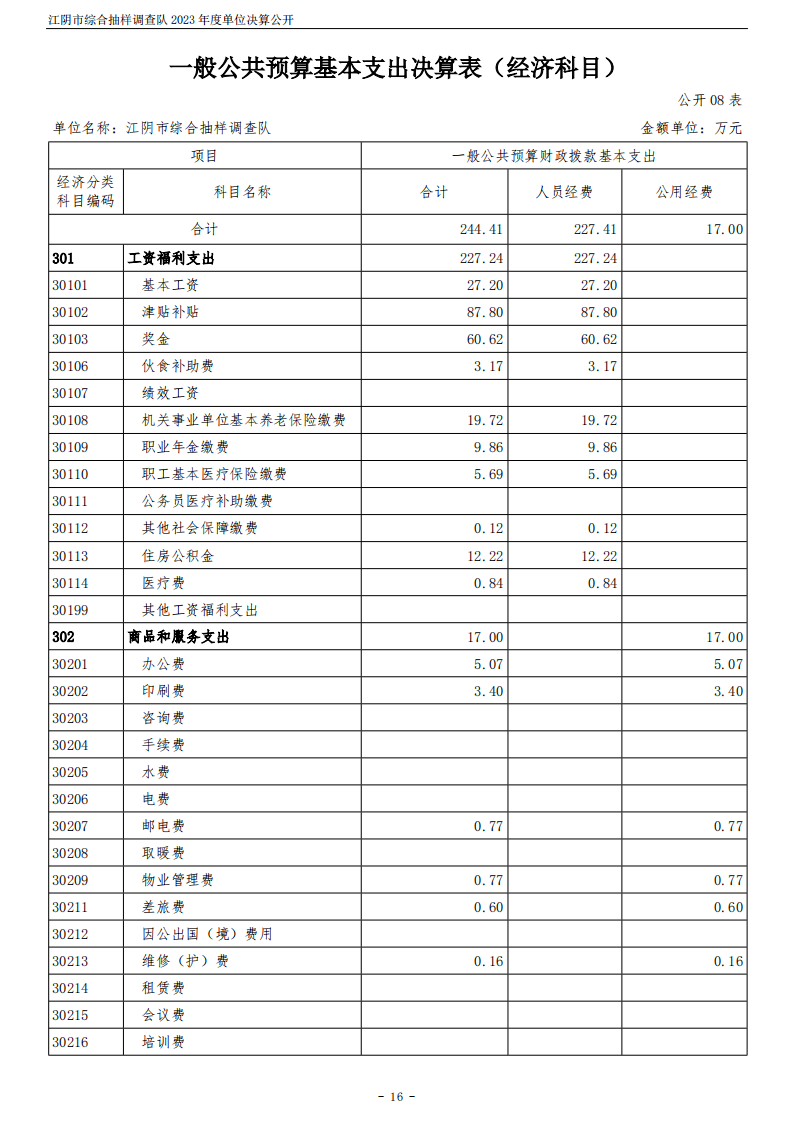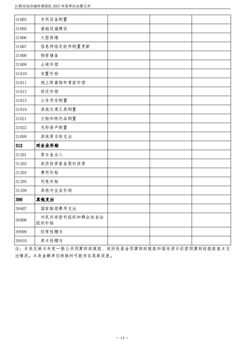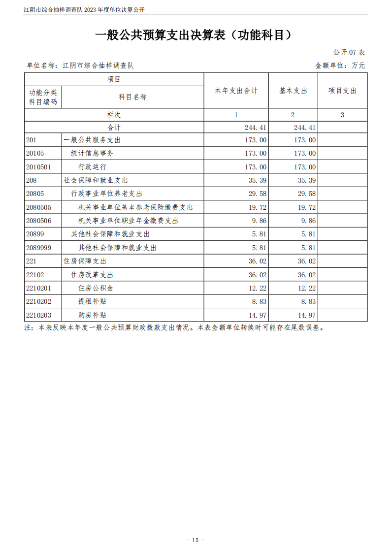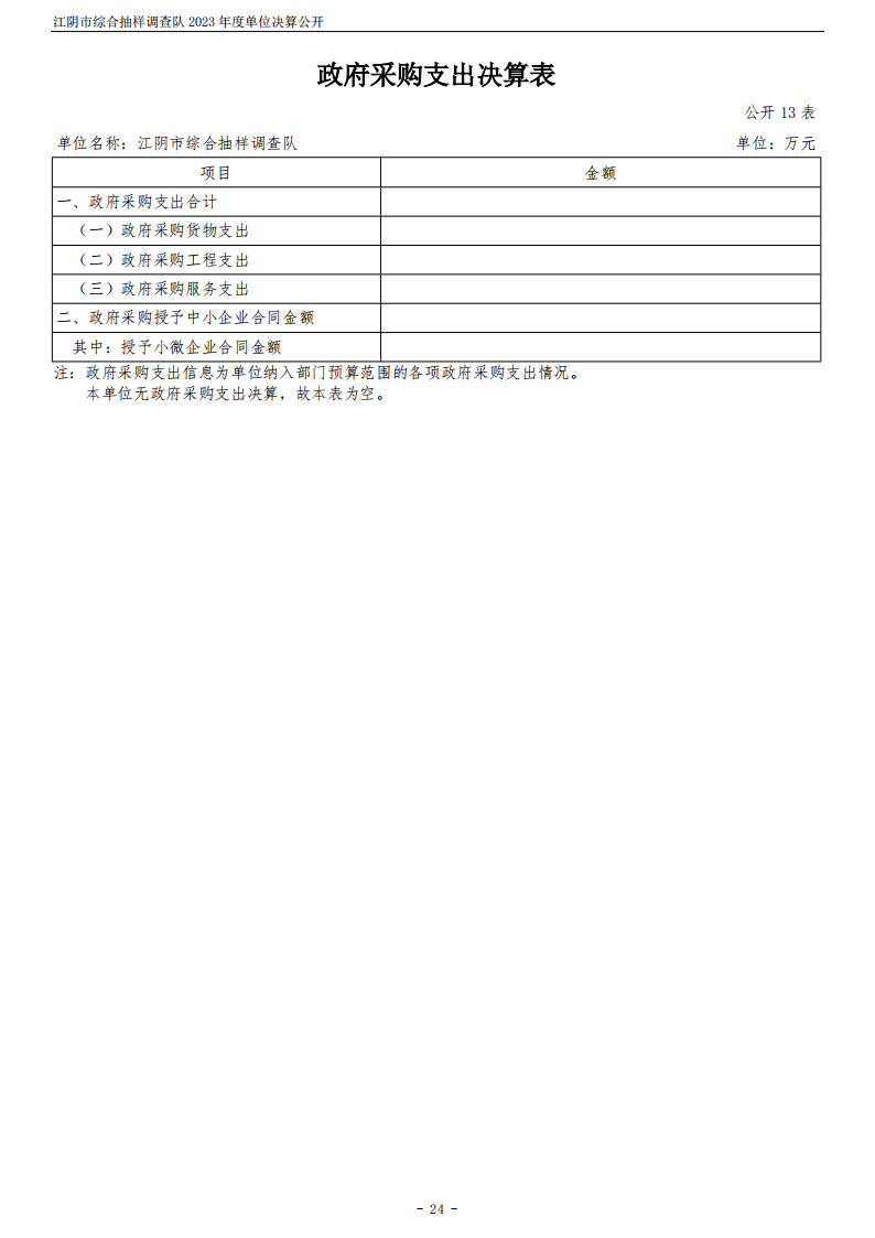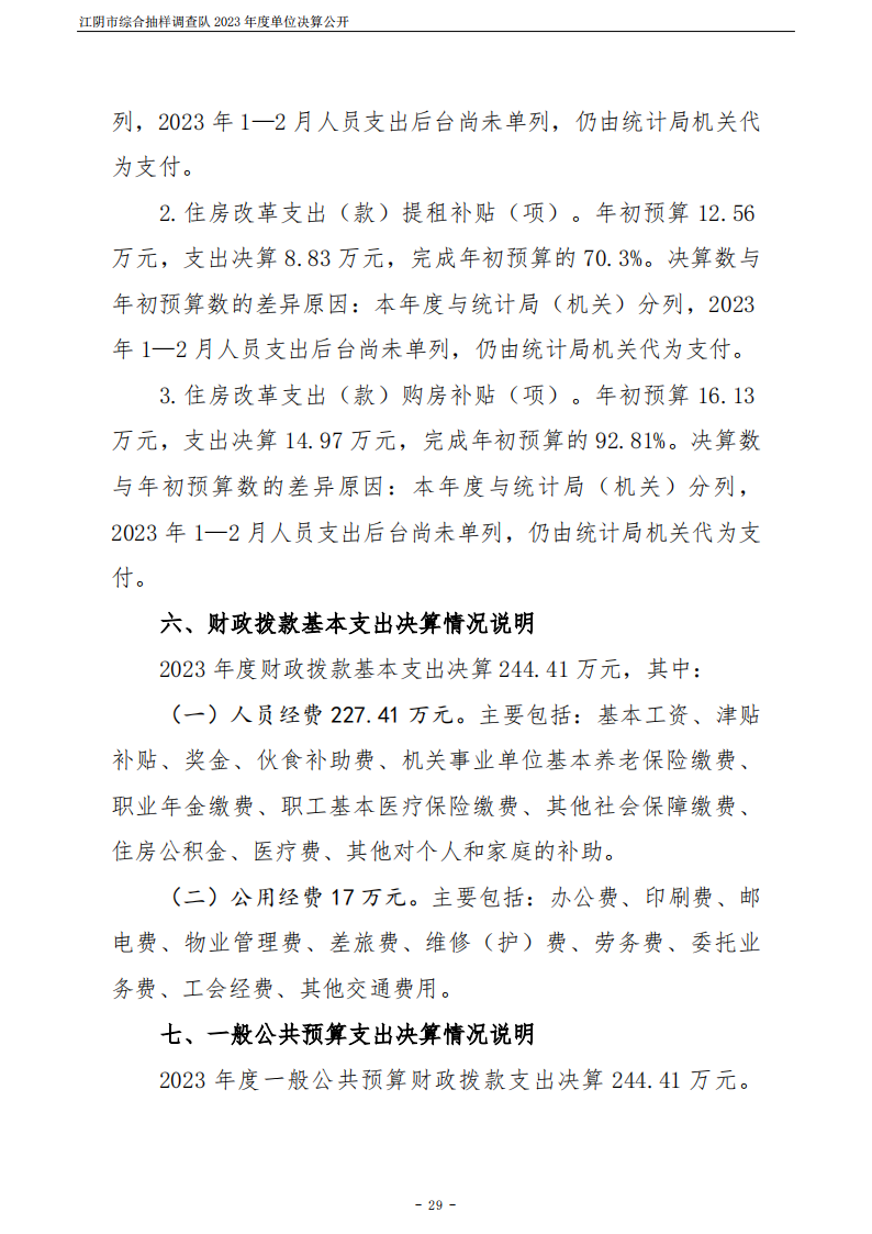 江陰市綜合抽樣調查隊2023年度單位決算公開