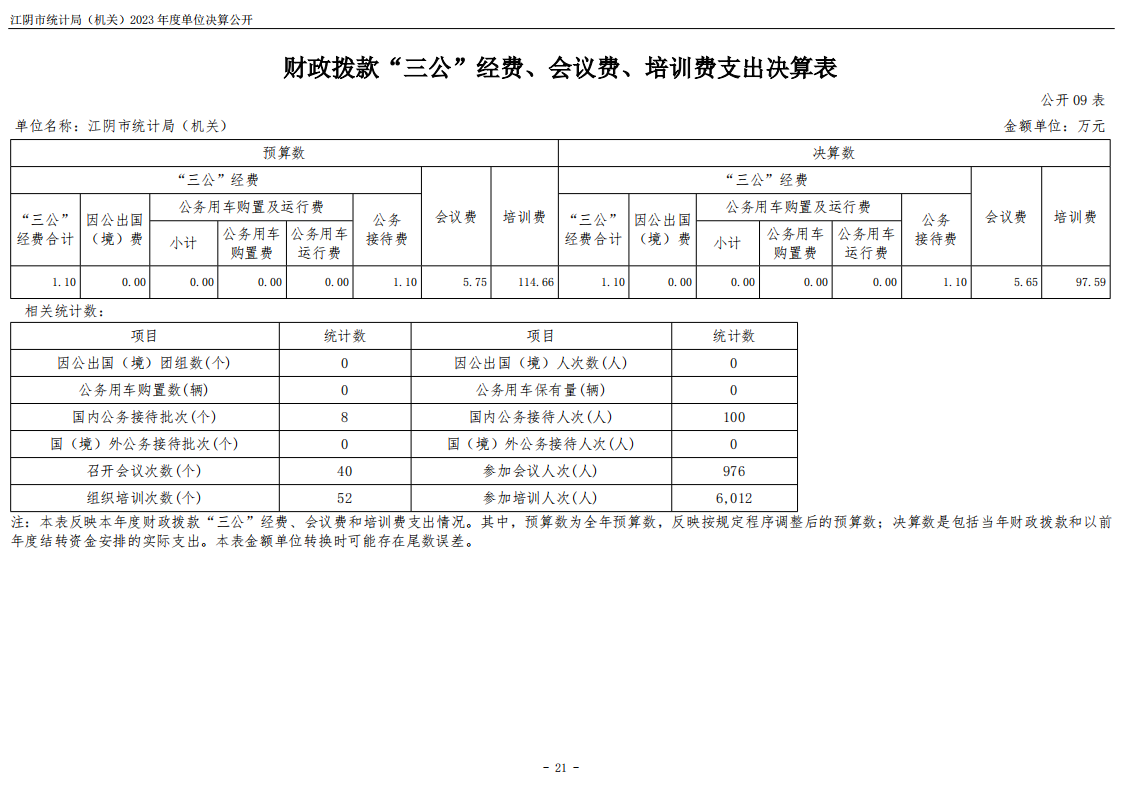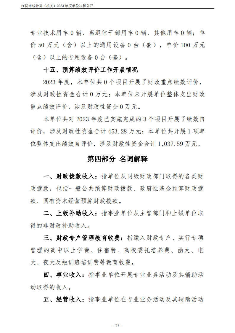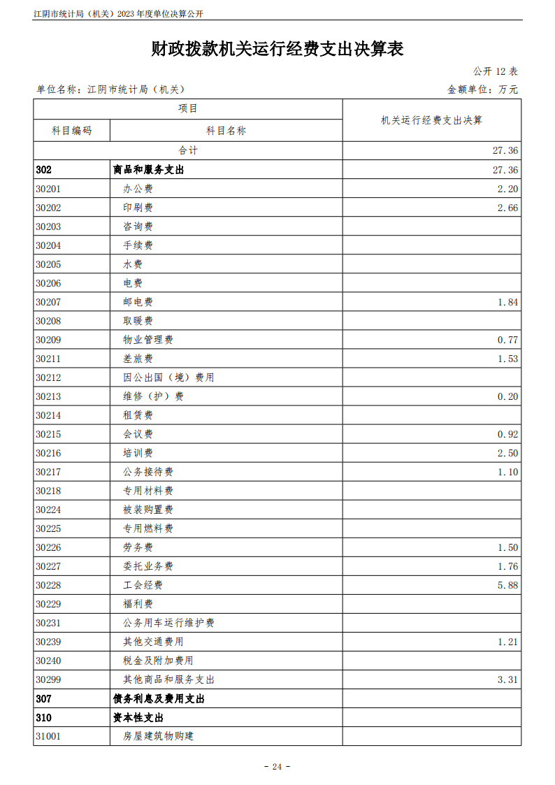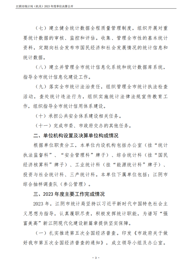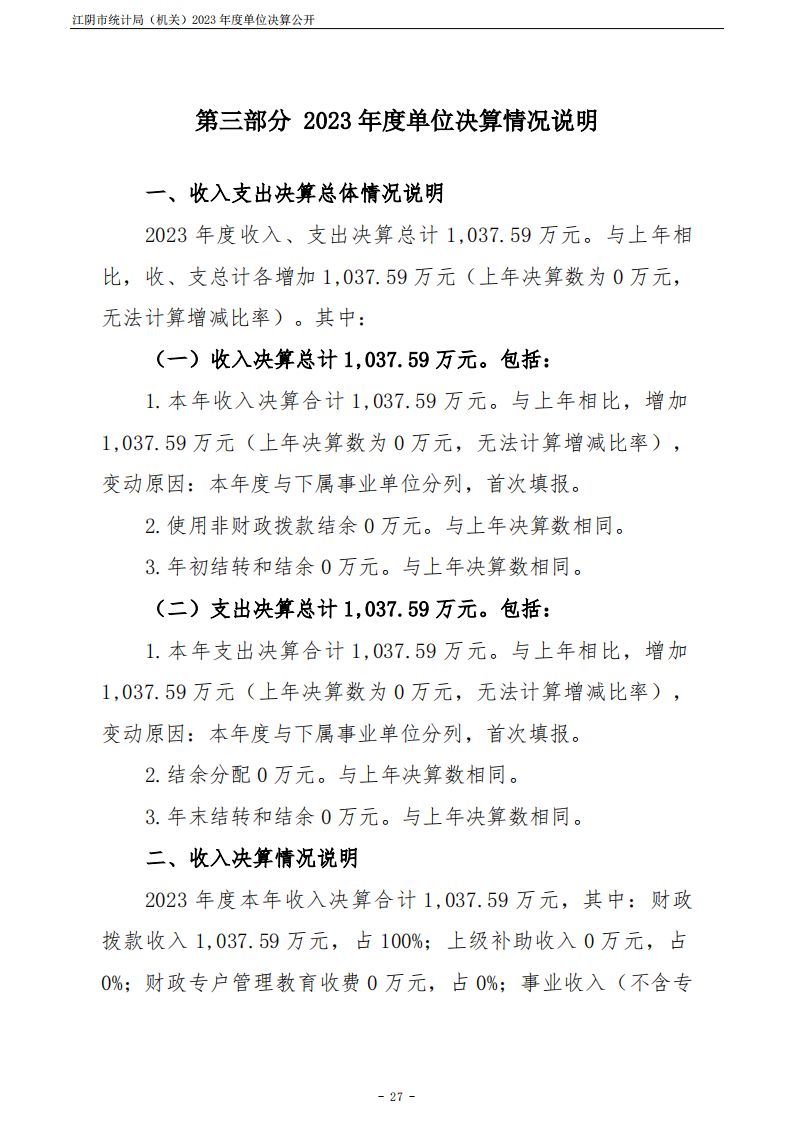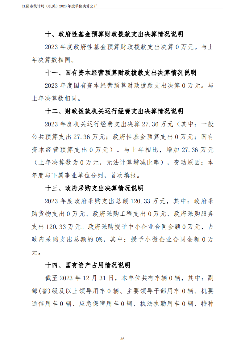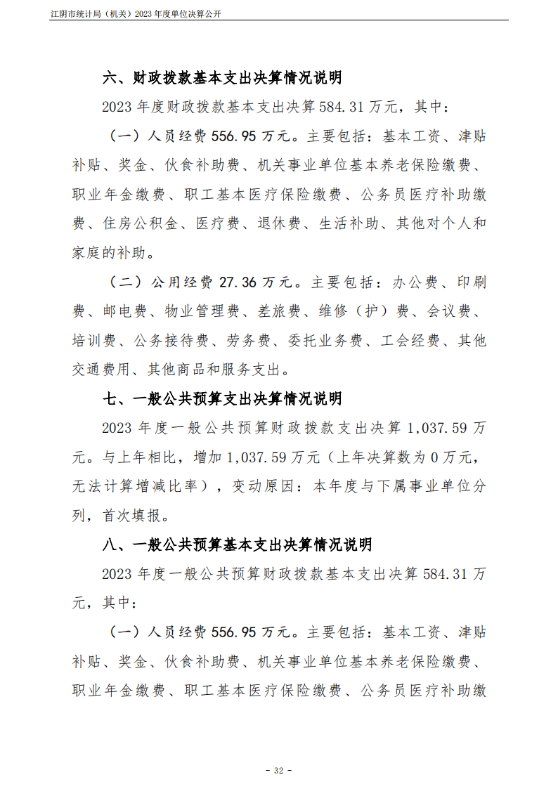江陰市統計局(機關)2023年度單位決算公開