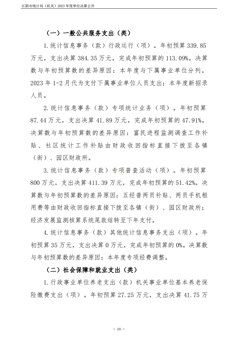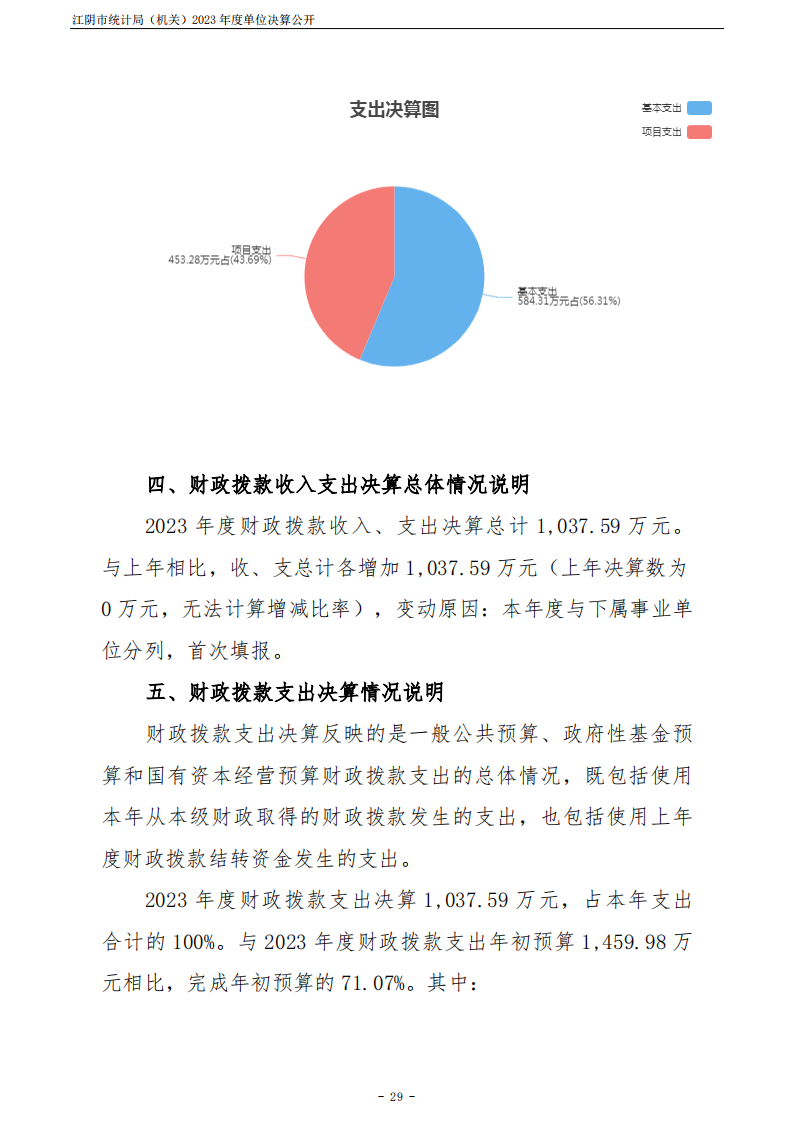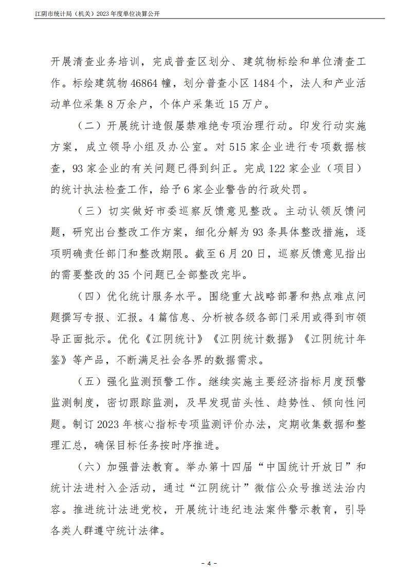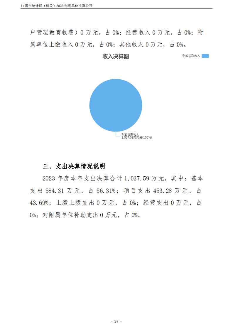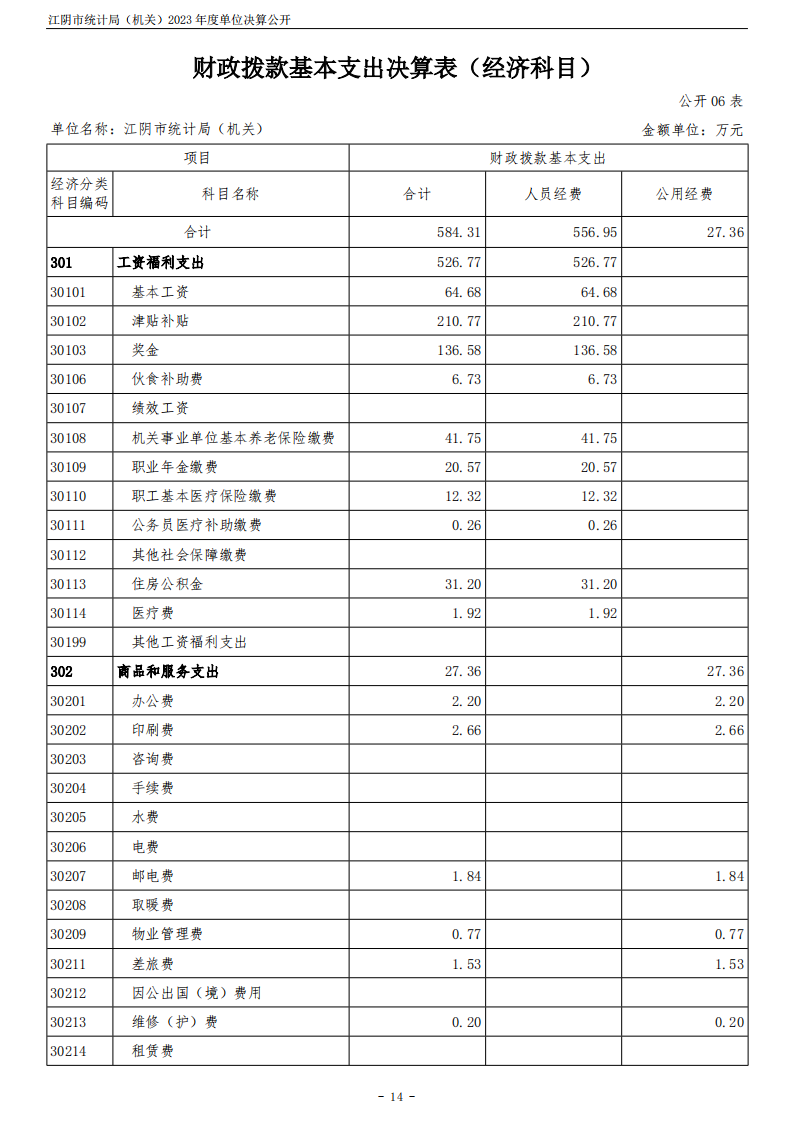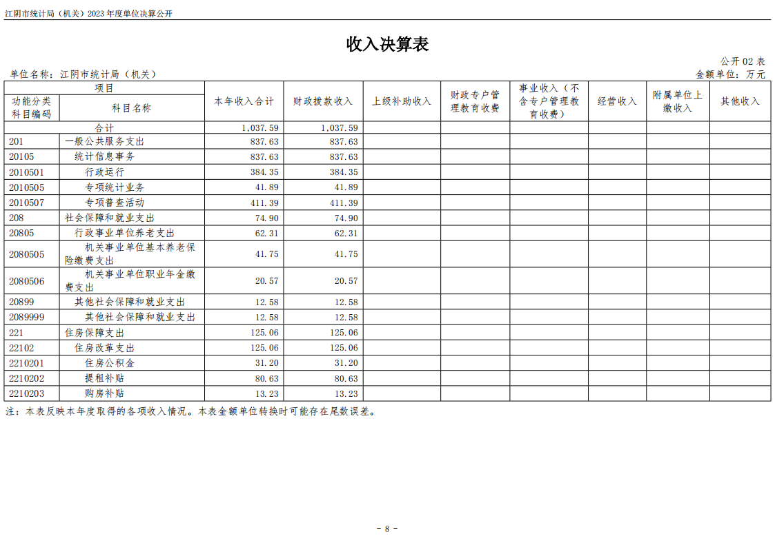 江陰市統計局(機關)2023年度單位決算公開