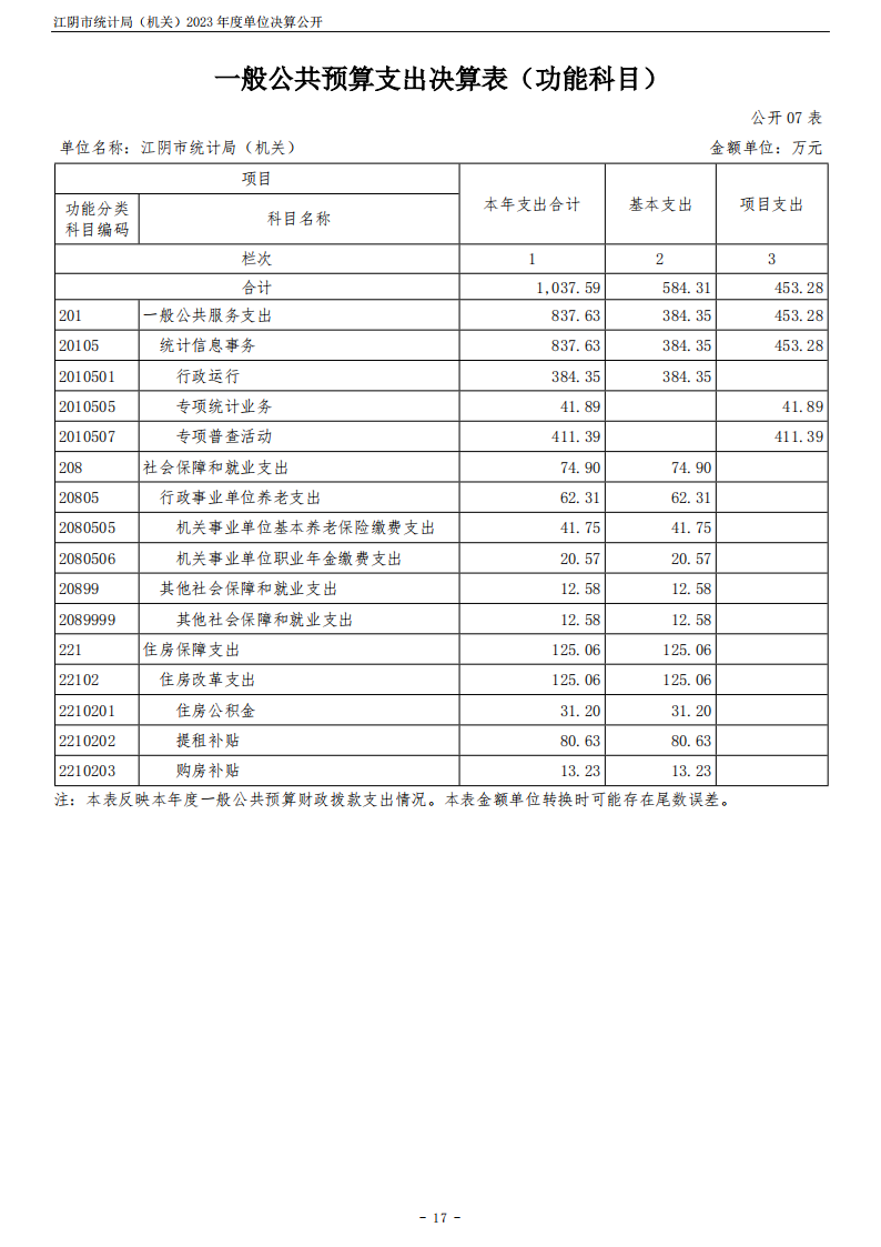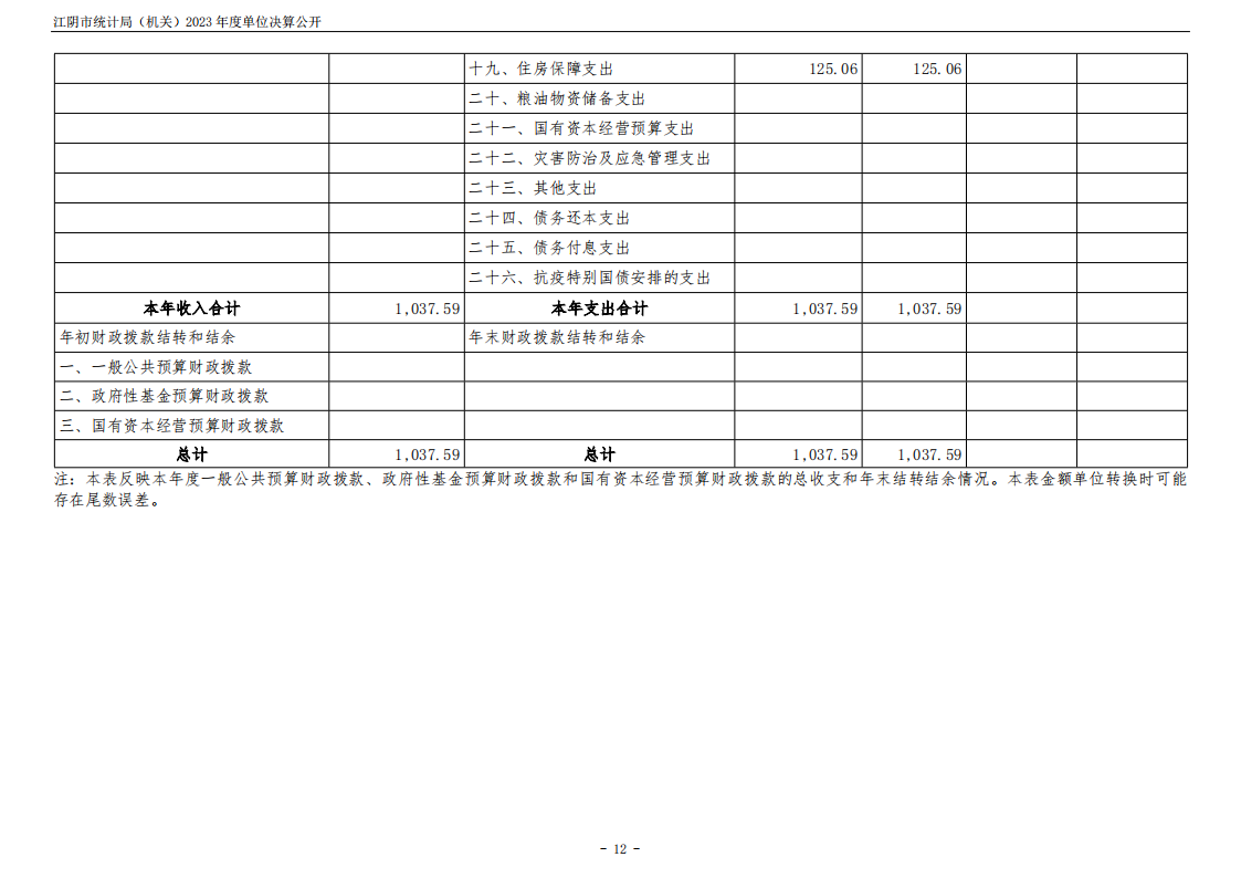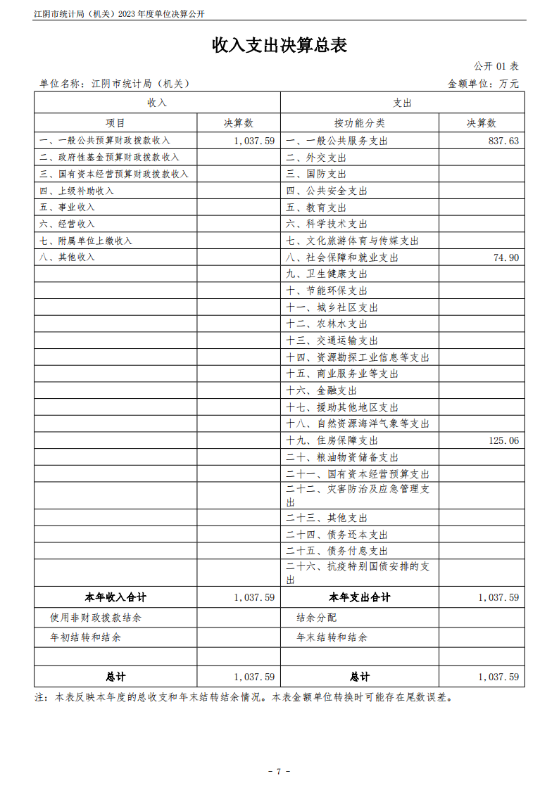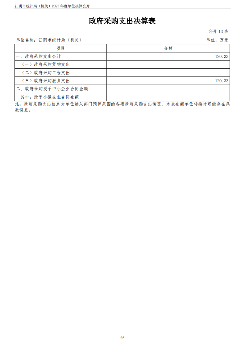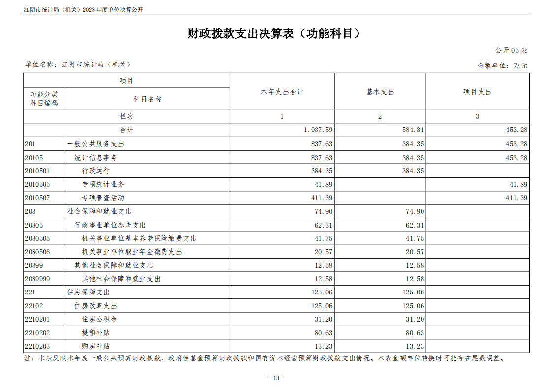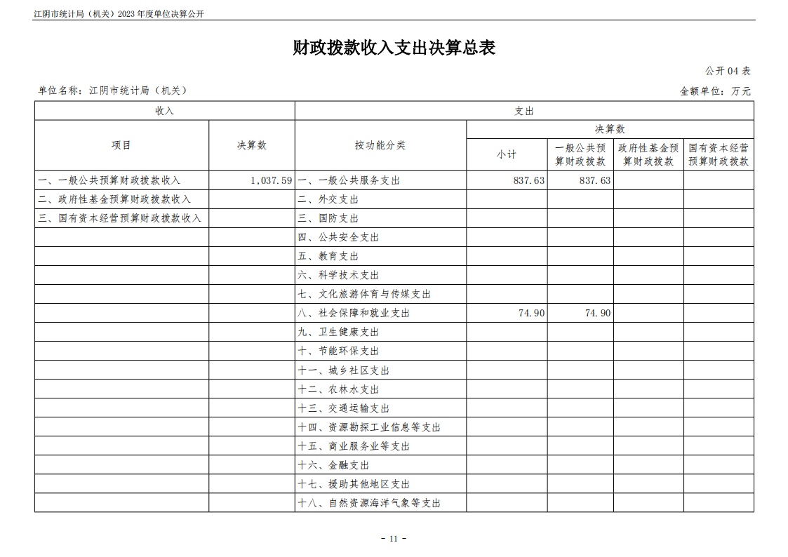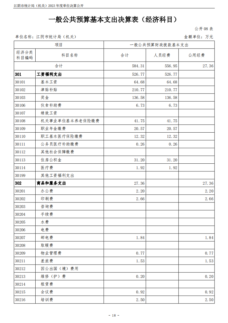 江陰市統計局(機關)2023年度單位決算公開
