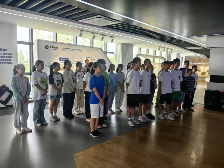 師生團首先來到江陰市錦繡江南環境發展有限公司。在工作人員的帶領下,師生團參觀了江陰市環保集團有限公司展示館。展示館內,同學們認真觀看企業宣傳片,深入了解環保集團發展歷程、發展理念以及未來規劃,并就環保知識進行互動交流。
