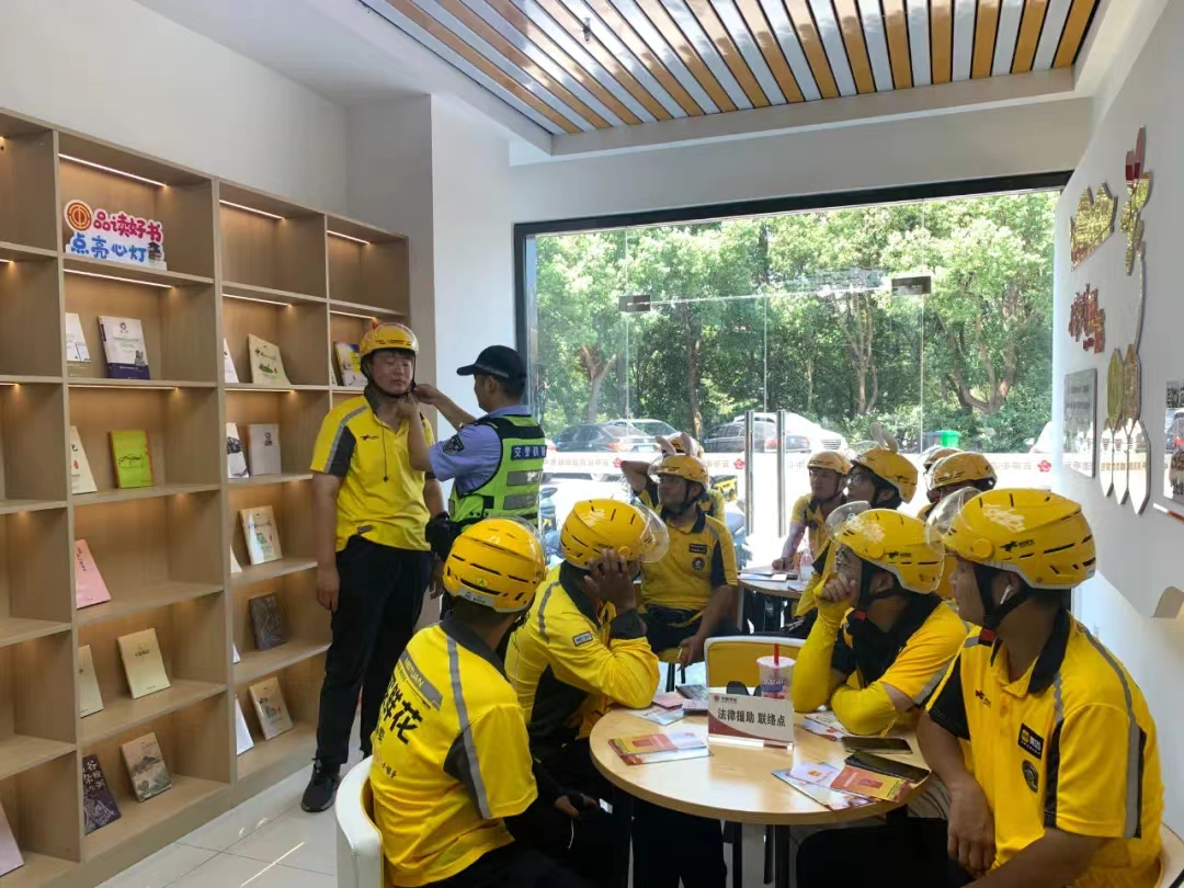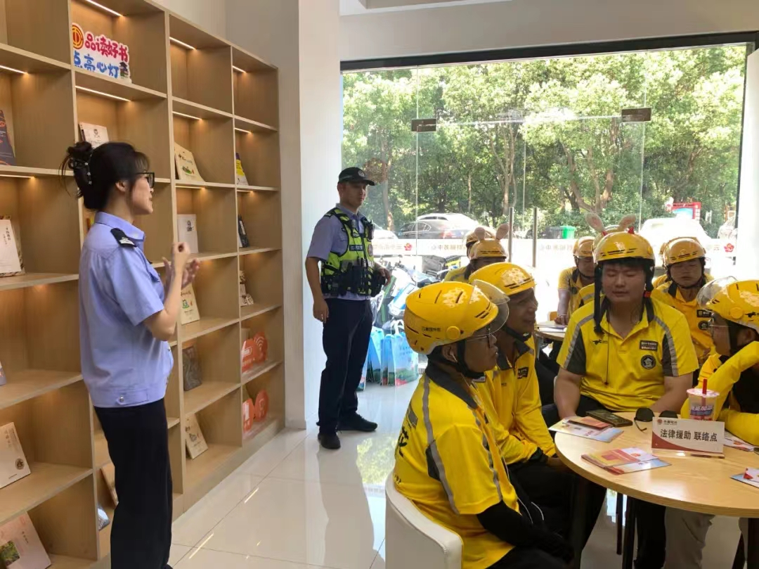 為有效提升云亭街道新業態從業者法治素養,切實依法維護新業態從業者合法權益,幫助新業態從業者學法、懂法、守法、用法,7月23日上午,云亭司法所聯合街道總工會、云亭交警中隊,邀請街道20名新業態從業人員在新敔山社區小蜜蜂驛站,開展“護航新業態 普法平安行”活動。司法干警朱昭華針對新業態新就業群體可能遇到的工傷待遇、勞動保障、家庭婚姻等方面的法律需求,為大家詳細講解《中華人民共和國民法典》《中華人民共和國法律援助法》等相關法律法規,通過“點對點”“面對面”的法律答疑,充實新業態群體的法律知識儲備。云亭交警中隊劉茜警官通過展示事故案例、講解交通安全知識等方式,強調騎乘電動車正確佩戴安全頭盔的重要性,呼吁大家要緊繃交通安全弦。