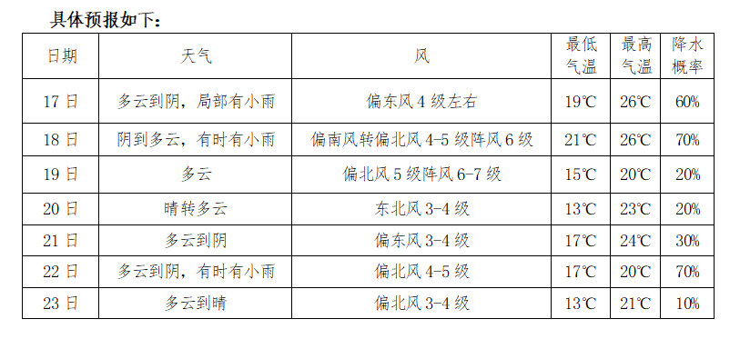 據最新氣象資料分析,16-18日冷暖空氣交匯,我市天氣以陰到多云為主,有時有小雨。18日夜里起冷空氣南下,19日將出現5級陣風6-7級,沿江江面陣風8級的偏北大風。受冷空氣影響,19-20日天氣短暫好轉,但氣溫有所下降,19日最高氣溫降至20℃。 防御建議:注意防范18-19日大風降溫天氣對交通運輸、設施農業、戶外作業等不利影響;農業方面,適時抓住晴好天氣,盡快完成秋收及晾曬;氣溫有起伏且晝夜溫差較大,需及時注意增添衣物,預防感冒,謹防腸胃道、呼吸道、心腦血管等疾病的發生。