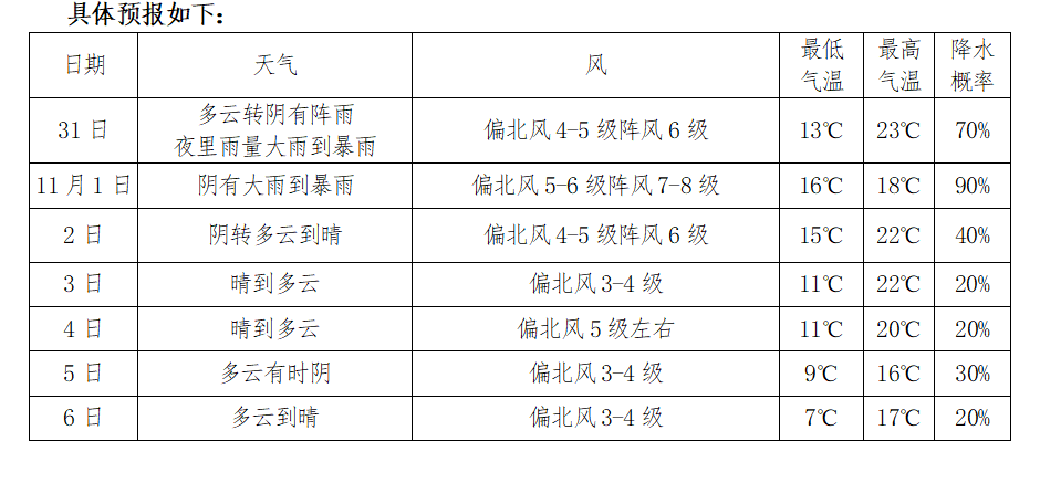 今年第21號臺風“康妮”(超強臺風級)今天(30日)14時,位于臺灣省臺東市東南方向的西北太平洋洋面上,預計將于31日白天在臺灣島東部沿海登陸,而后穿過臺灣島向浙閩一帶沿??拷?,并逐漸向東北方向移動。受其外圍環流云系影響,31日后期至11月1日我市有明顯風雨天氣,過程雨量大雨到暴雨,期間伴有5-7級、沿江江面陣風8級的偏北大風。2日白天起天氣轉好,短期內氣溫總體平穩,5-6日氣溫有所下降。