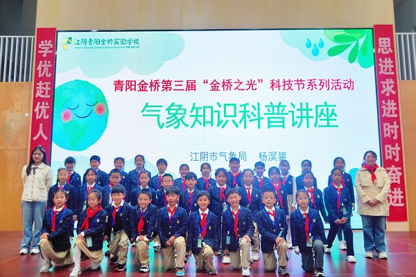 近日,江陰市氣象局氣象科普服務志愿者走進江陰青陽金橋實驗學校,開展氣象知識科普講座。
