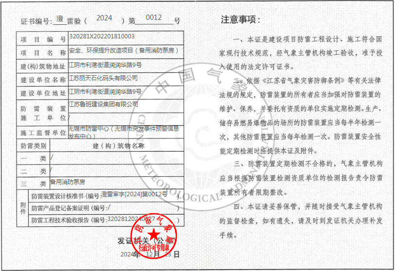 首頁>>市氣象局 > 行政權力 > 防雷裝置驗收合格證公示