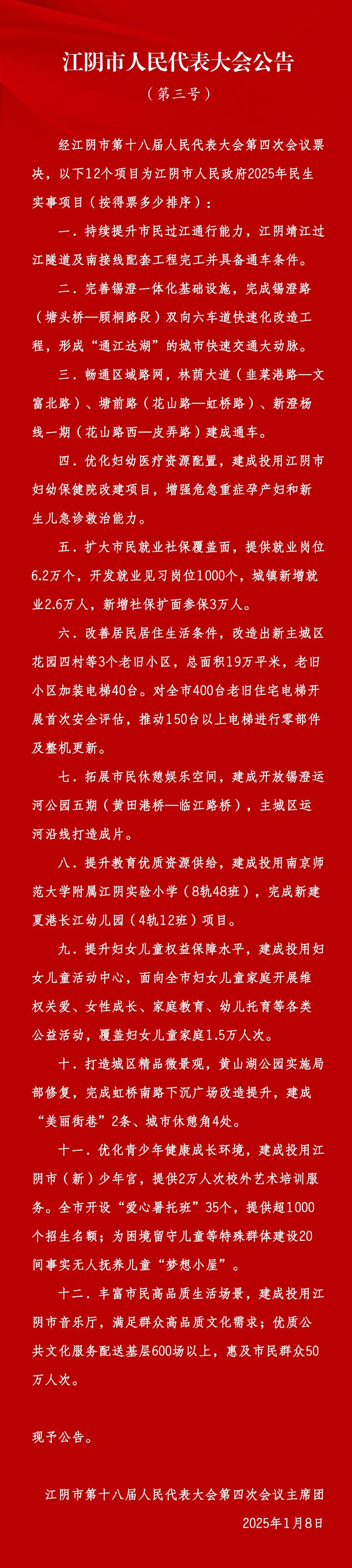 | 內容概述 | 2025年江陰市為民辦實事項目 | ||||