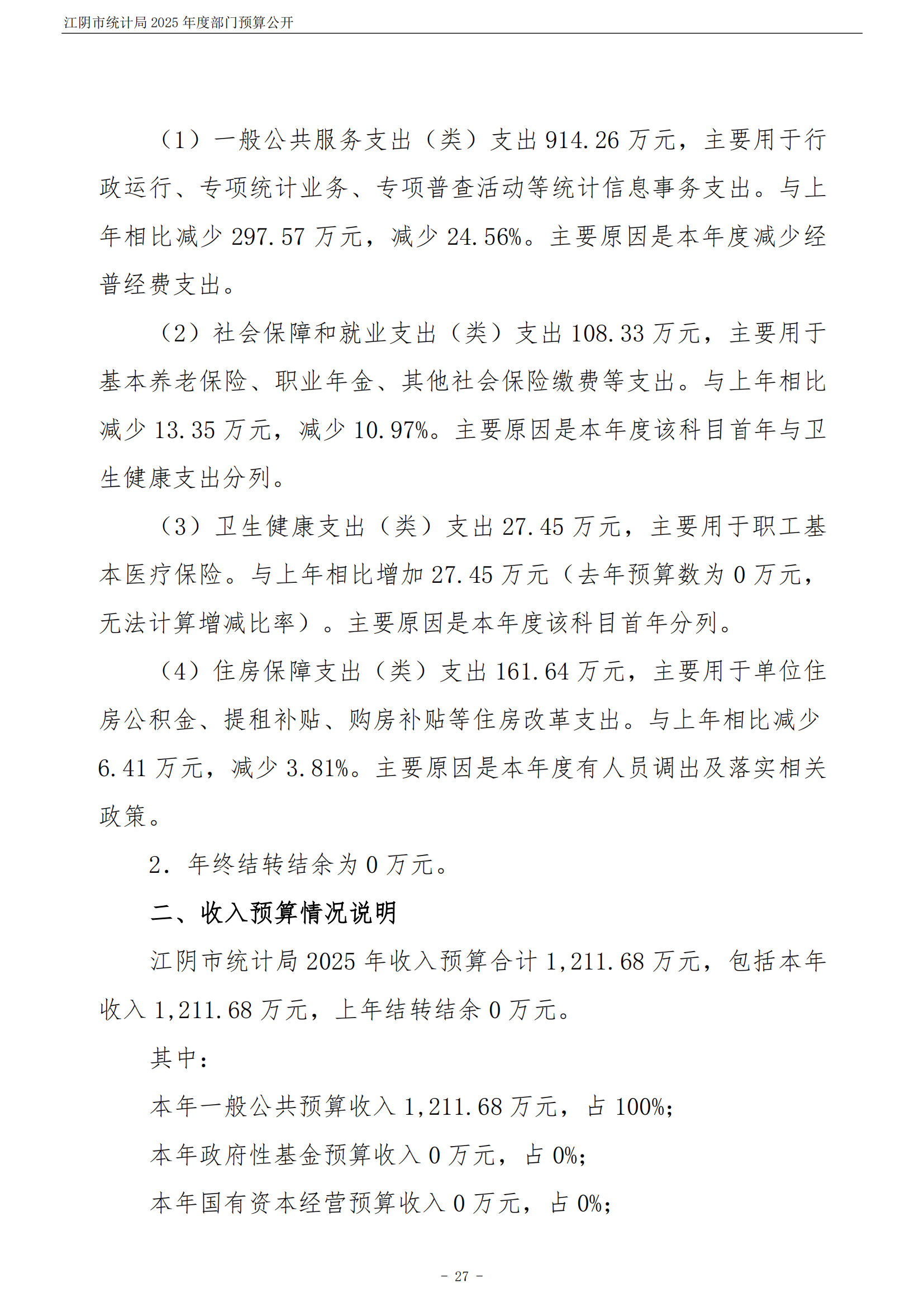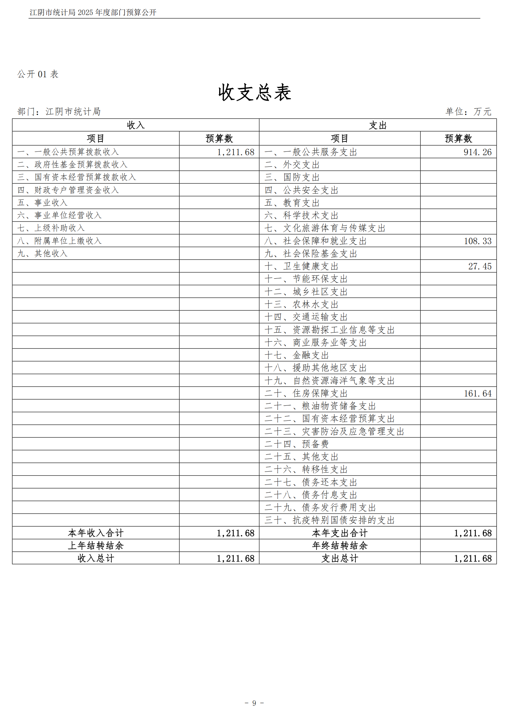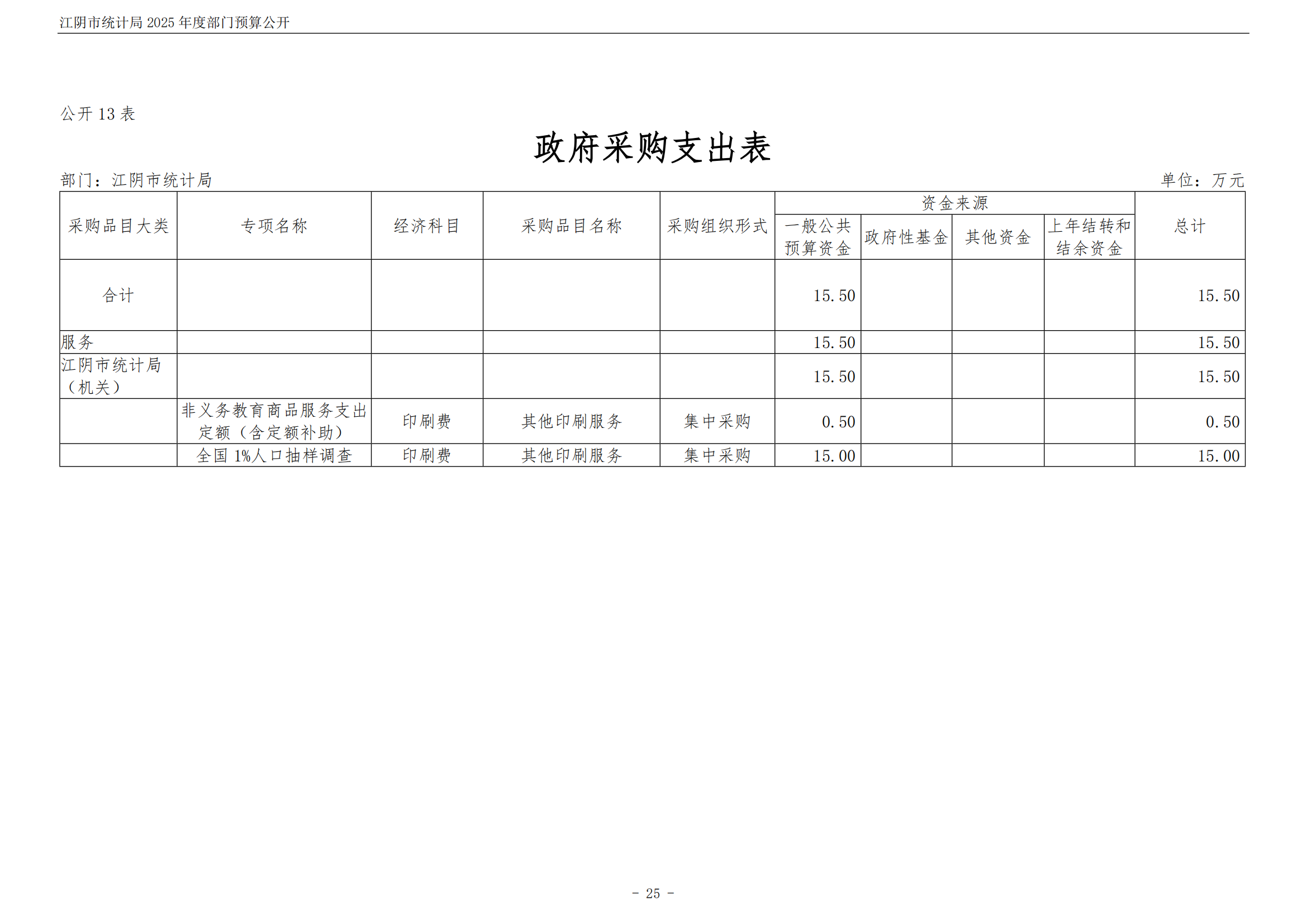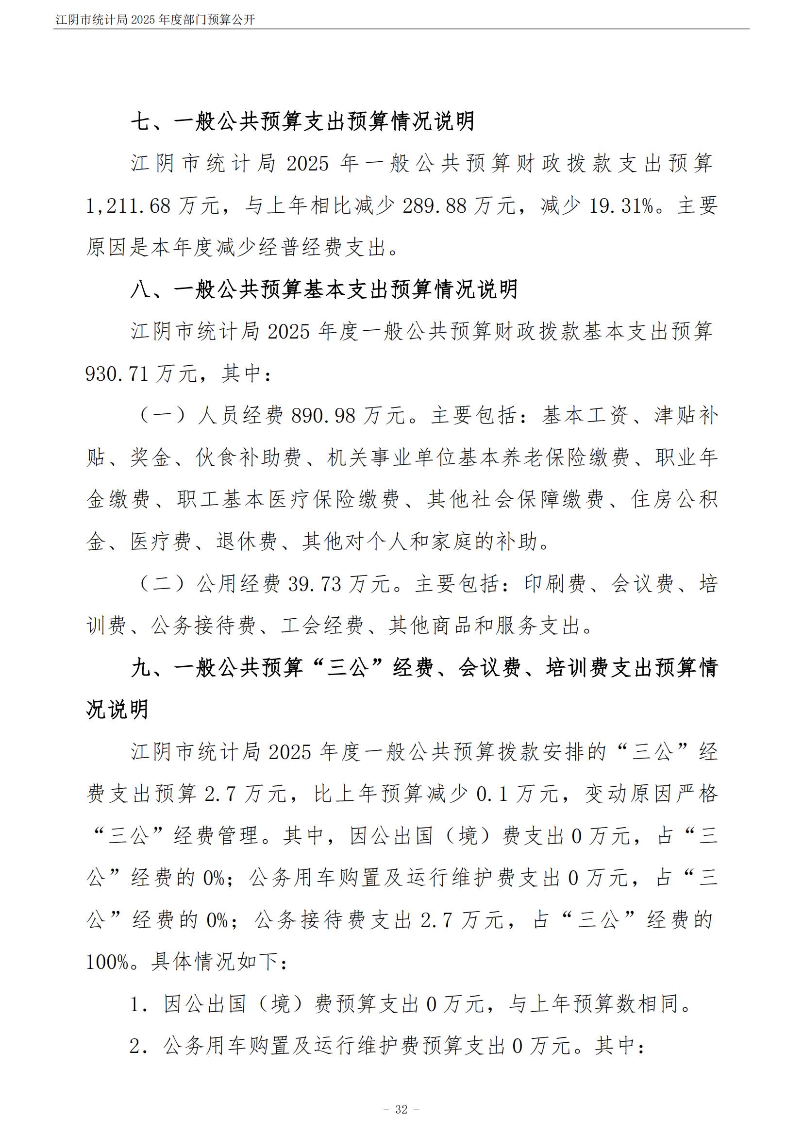 江陰市統計局2025年度部門預算公開