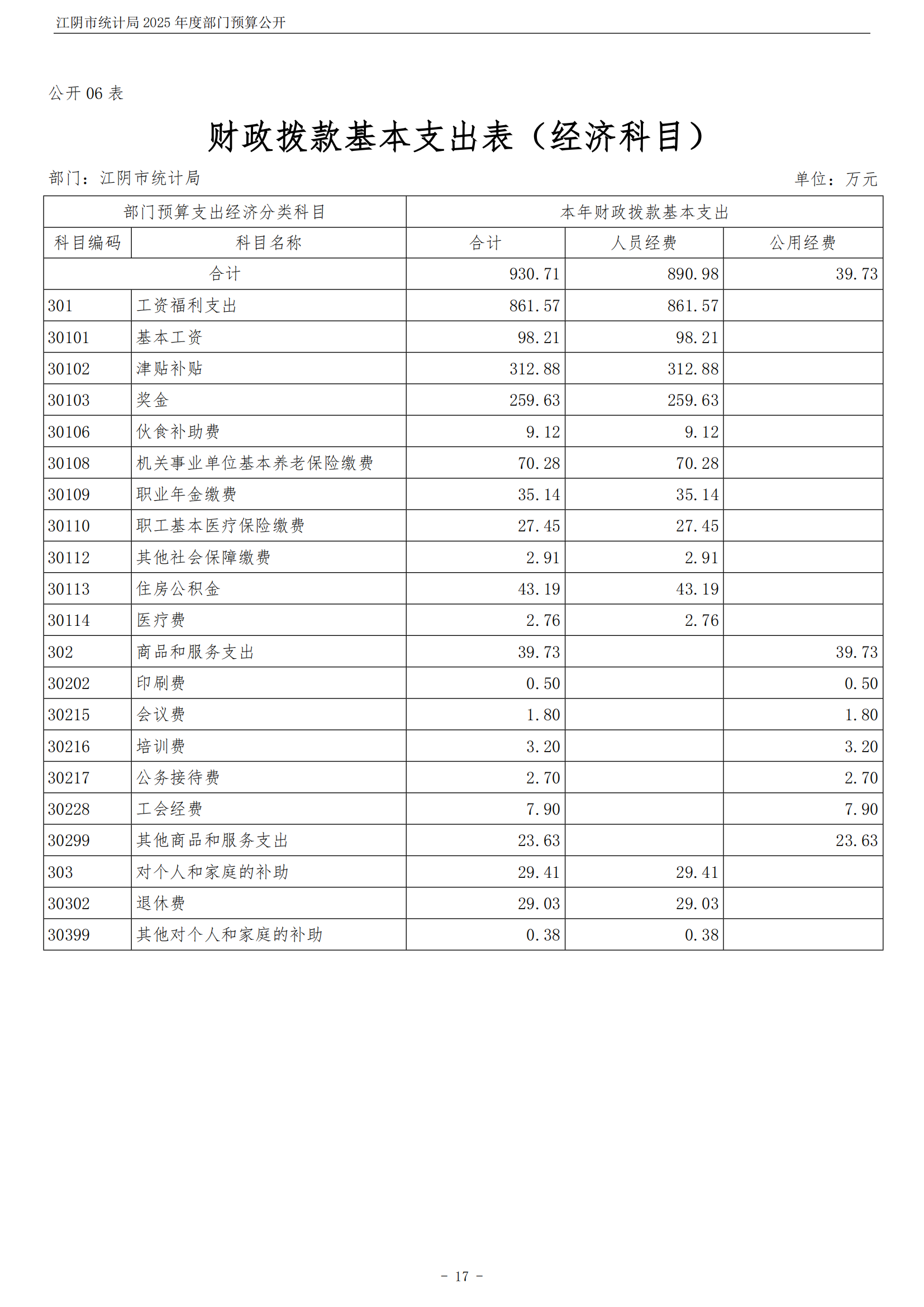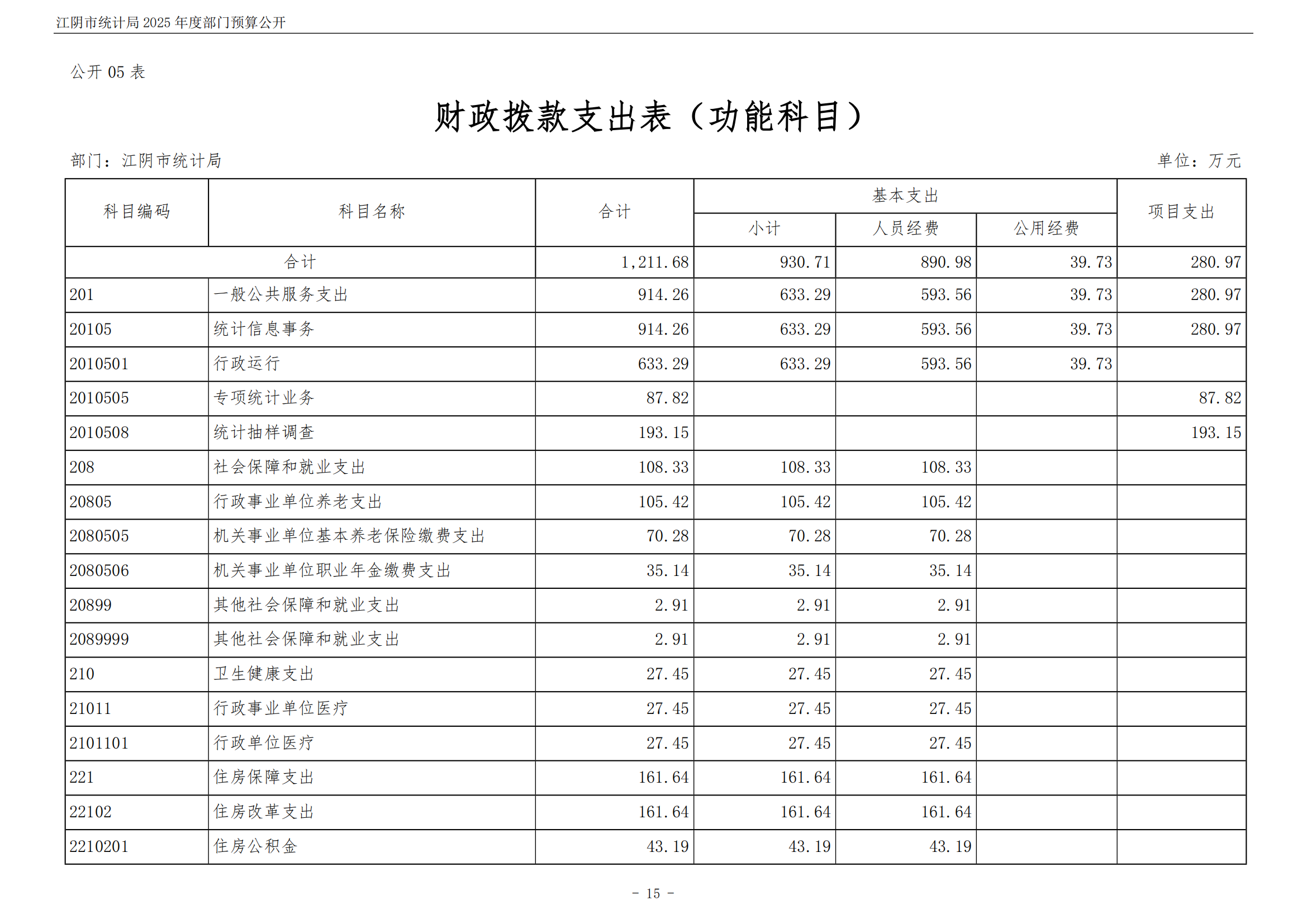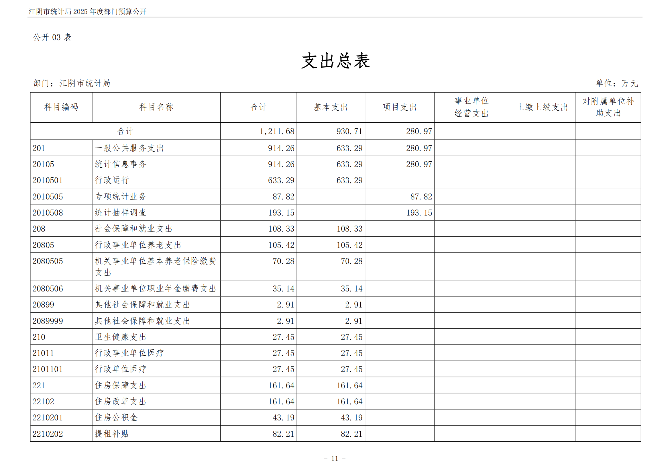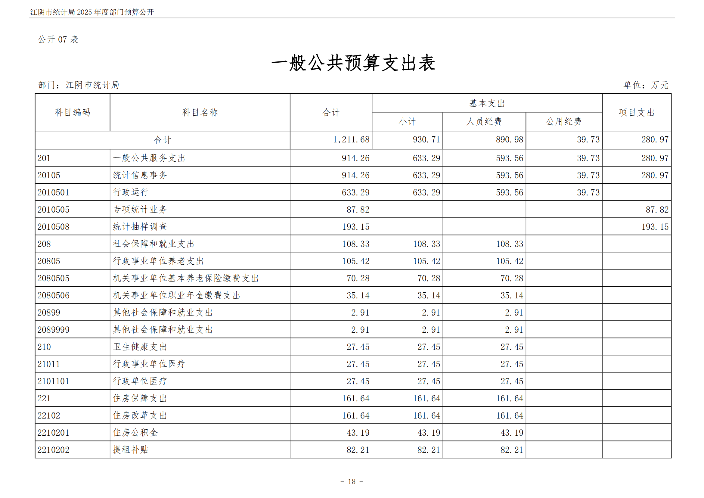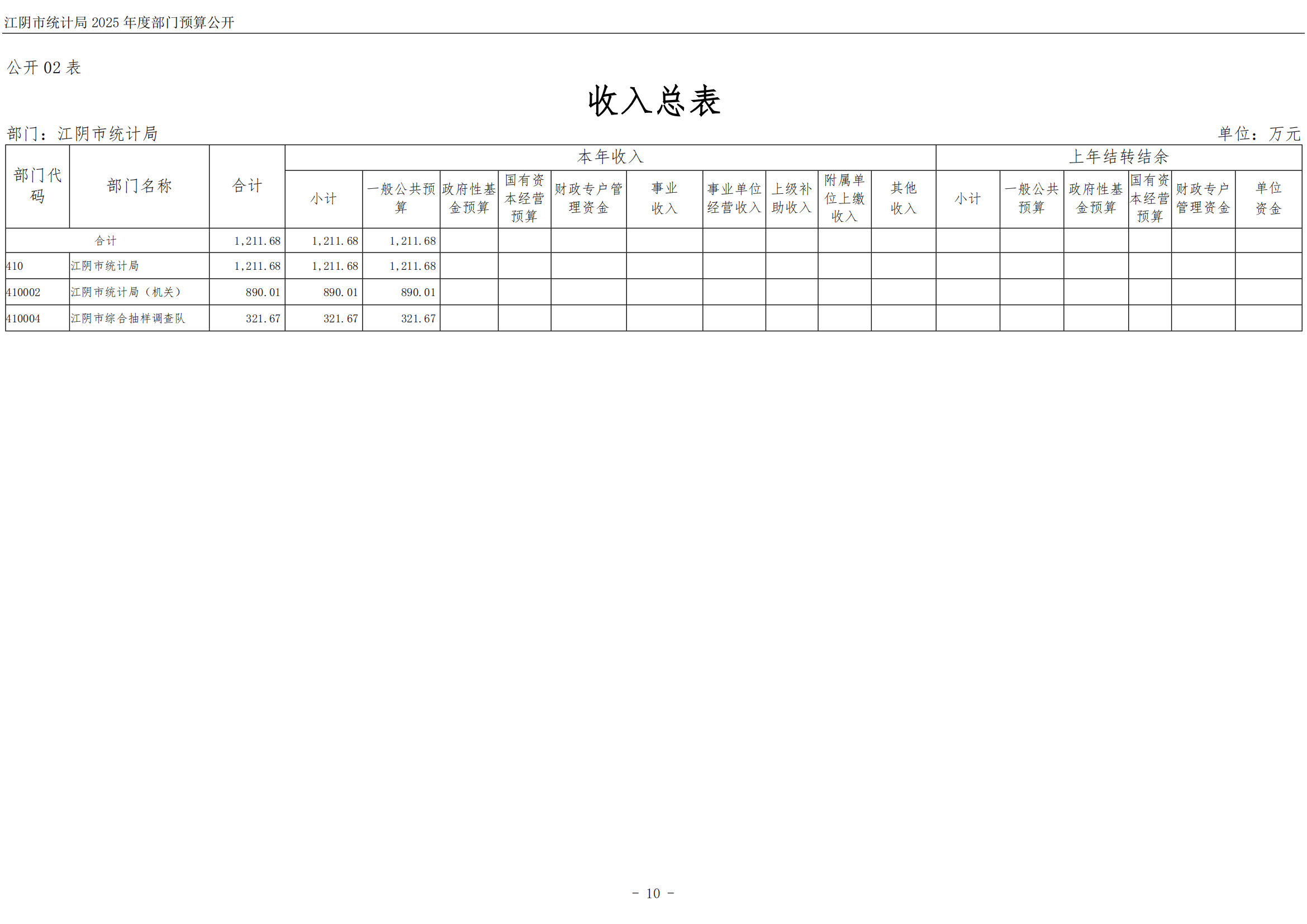 江陰市統計局2025年度部門預算公開