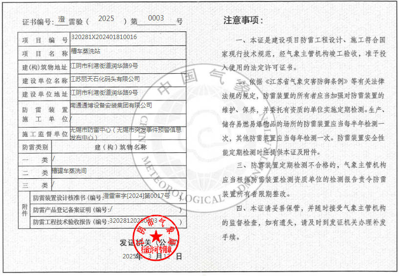 首頁>>市氣象局 > 行政權力 > 防雷裝置驗收合格證公示