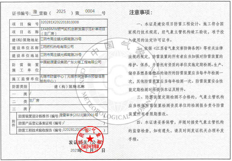 | 江陰燃機熱電有限公司 |