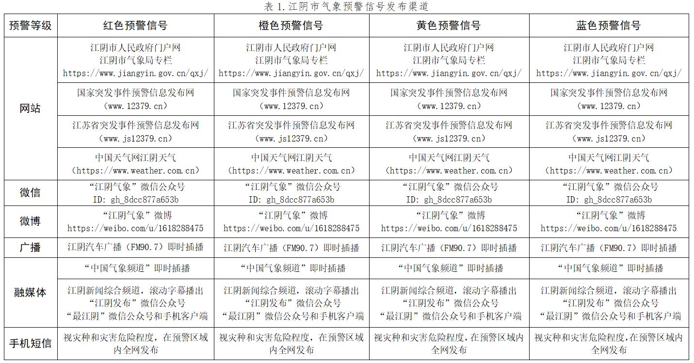 江陰市氣象局關于氣象災害預警信號公眾發布渠道的公告