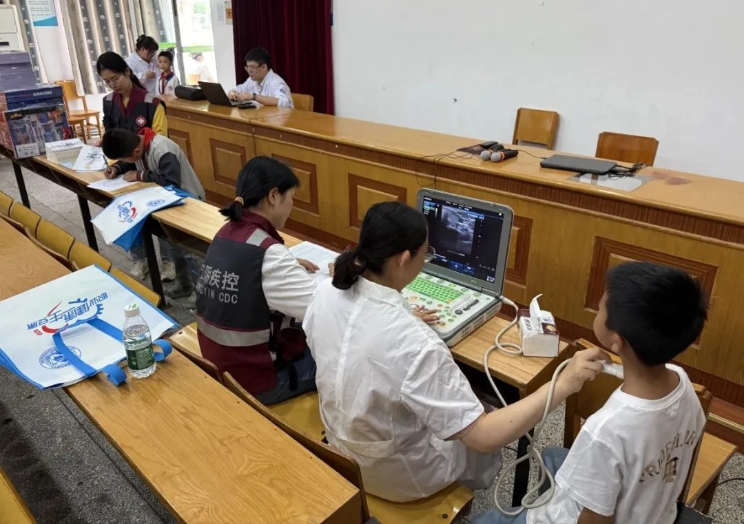 為掌握重點人群碘營養狀況,完善碘缺乏病防治策略,近期,市疾控中心組織專業技術人員對轄區內5所小學開展8-10歲兒童碘營養水平專項監測評估工作。選取南閘實驗學校、璜土實驗小學、長山中心小學、周莊實驗小學和文林中心小學作為監測點,開展甲狀腺B超檢查、身高體重測量以及家庭食用鹽樣、學生尿樣采集工作。專業技術人員將所有樣本進行實驗室檢測,重點分析鹽碘含量和尿碘水平,為科學評估重點人群碘營養狀況提供數據支撐,多維度評估重點人群碘營養水平。同時現場發放中國居民補碘指南、碘缺乏病宣傳折頁及文具套裝等,向師生普及科學補碘知識,提升健康素養。