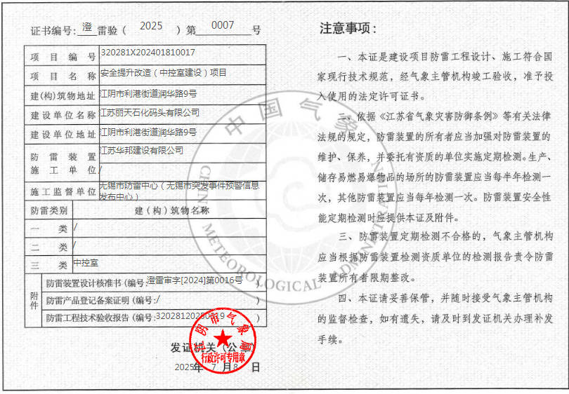 首頁>>市氣象局 > 行政權力 > 防雷裝置驗收合格證公示