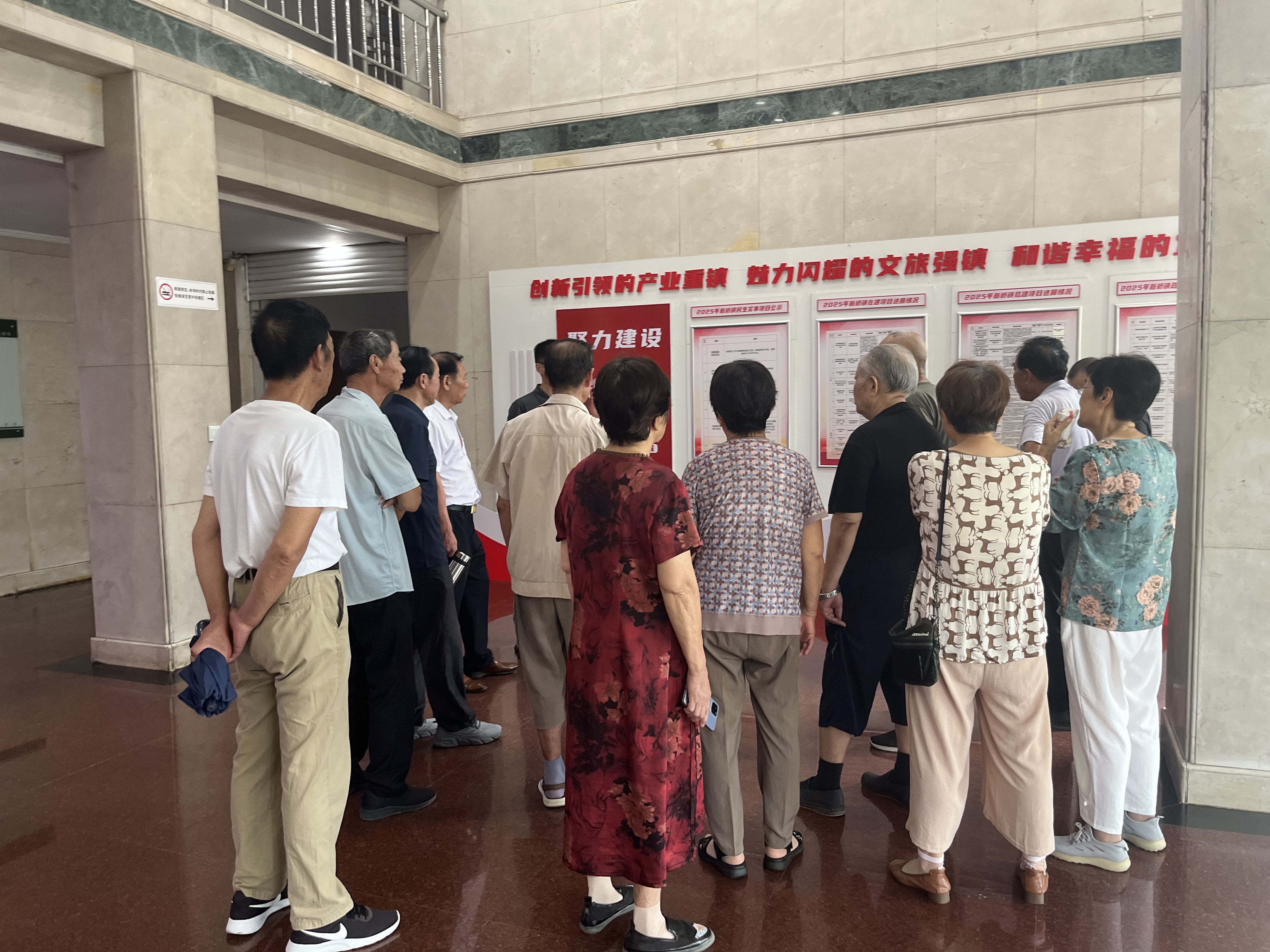 在鎮政府,居民代表們觀看了大廳內的項目進度公示表,了解新橋鎮最新的產業項目、民生項目進展情況。