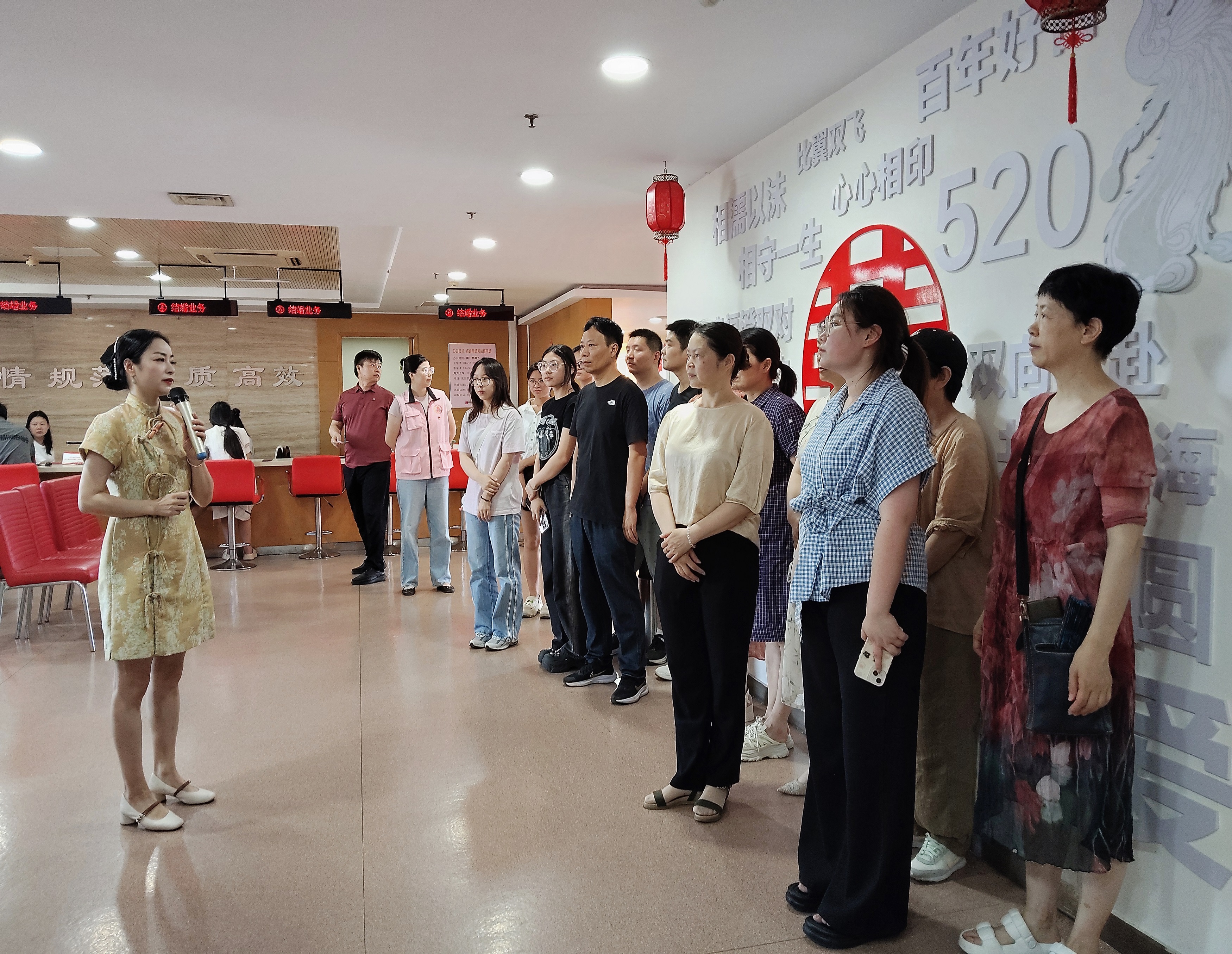 7月1日,城中社區居民及江陰市職業技術學校的師生代表受邀走進江陰市婚姻登記中心,開啟一場甜蜜啟航之旅。中心主任帶領大家參觀了婚姻登記工作場所,了解了業務辦理流程、所需材料等便民政策。在“幸福澄雙對”新婚主題樂園,沉浸式體驗了江陰特色的新婚輔導服務;在西式合影點和中式兩姓聯姻墻前,眾人紛紛拍照留戀,了解了“愛的瞬間”拍照打卡服務的設計意義和內涵。隨后,大家駐足愛語屏前,通過社工的解讀學習“愛的秘訣”,對這種將婚姻家庭經營技巧融入互動游戲的方式感到新穎和認可。
