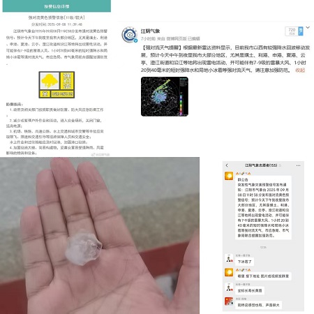 預警信號發布1小時后,12時35分左右收到氣象愛好者信息反饋,我市華士鎮和周莊鎮等地出現了直徑約1~2厘米的冰雹。同時,部分地區出現了短時強降水和雷暴大風,最大小時雨強45.1毫米(月城鎮),最大陣風9級(華士鎮陸橋)。此次強對流天氣過程,天氣實況和預警信息預報內容高度吻合,取得了非常良好的預警效果和服務成效。